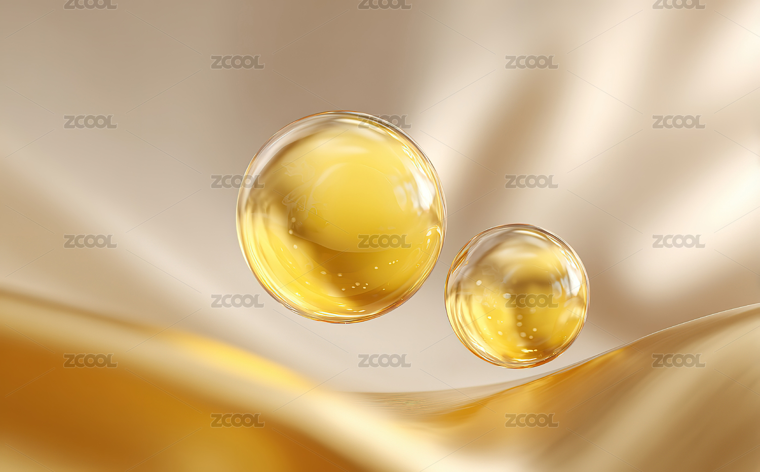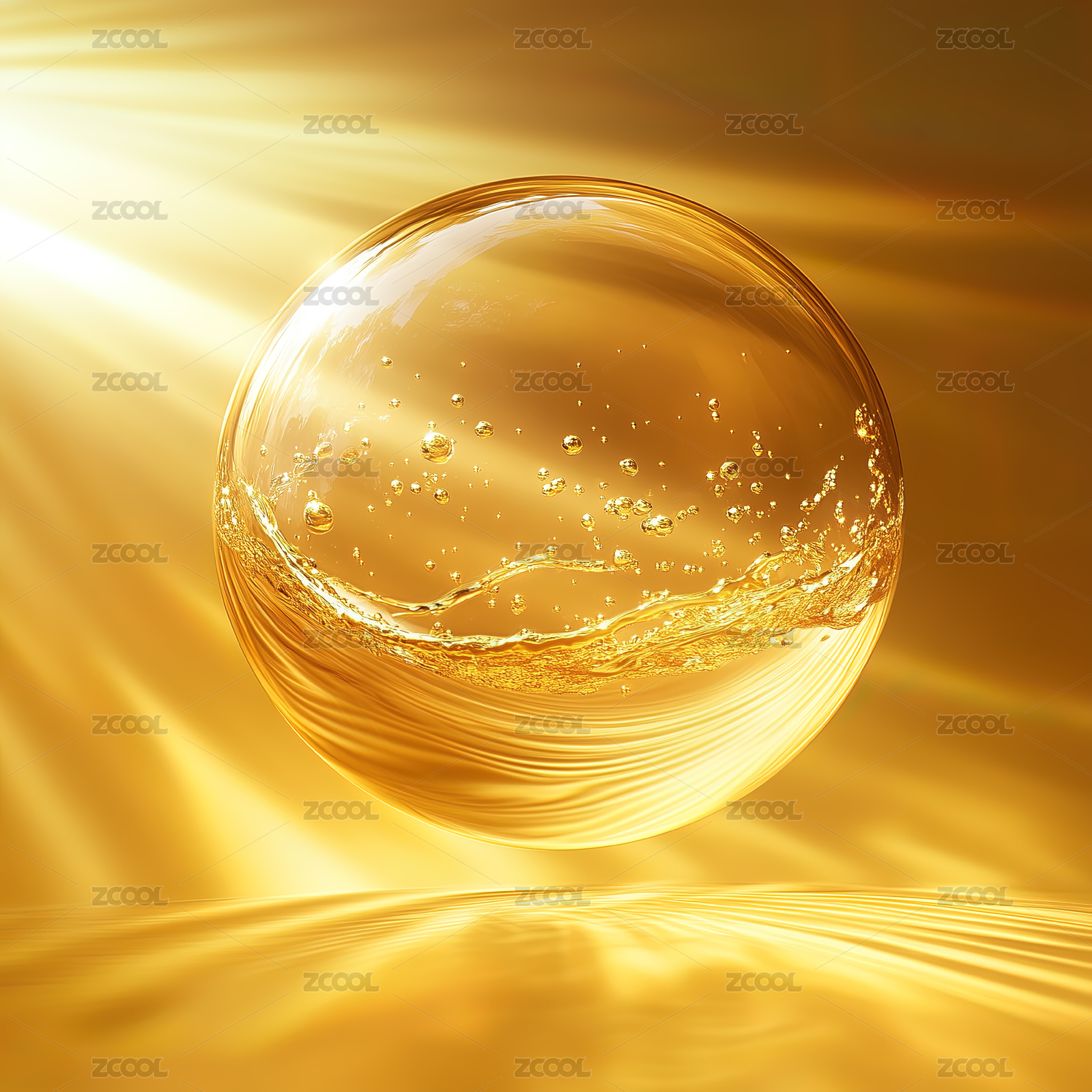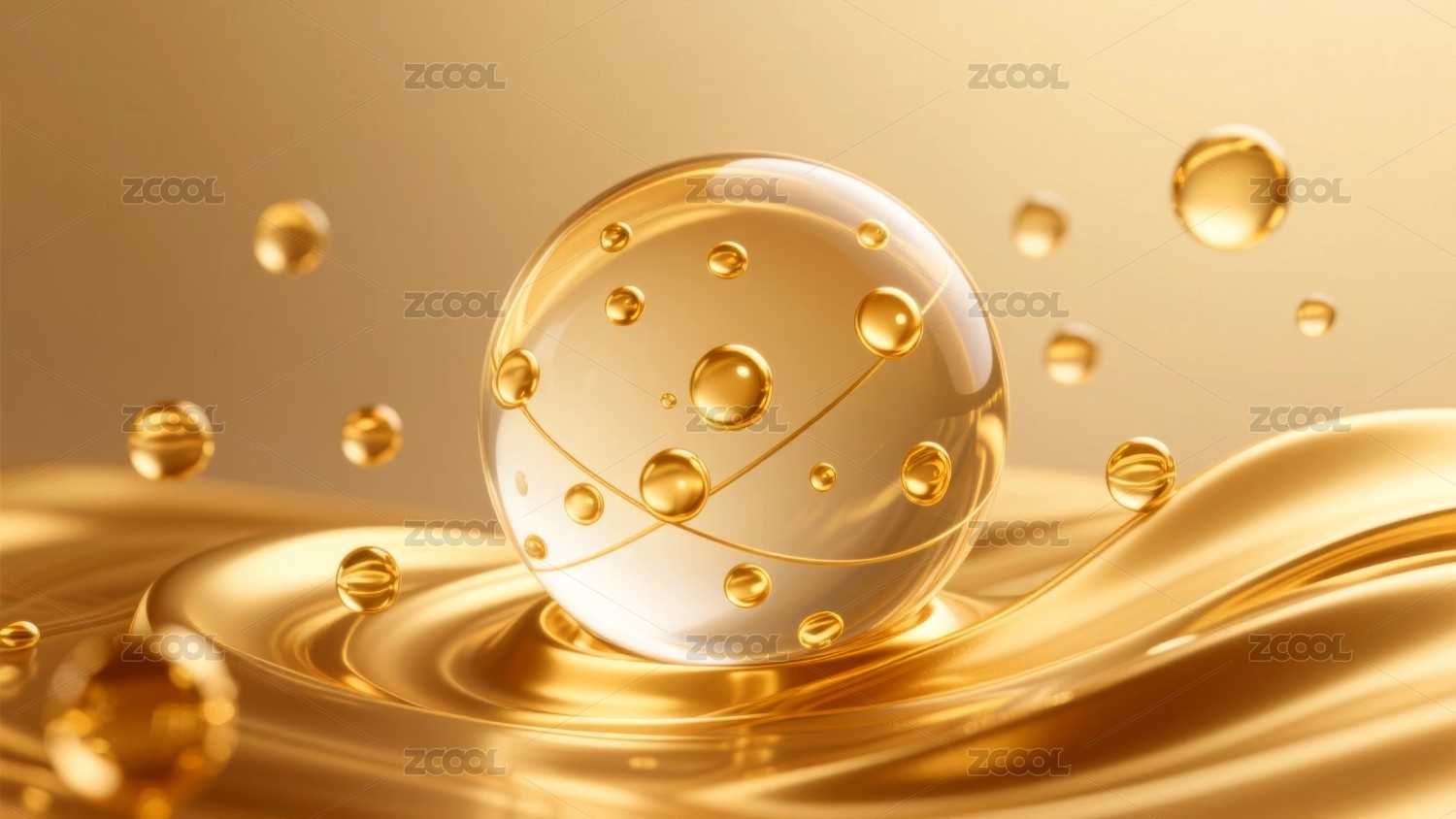 球形,分子,特写,金色,水球,精油,透明,精华,3D模型