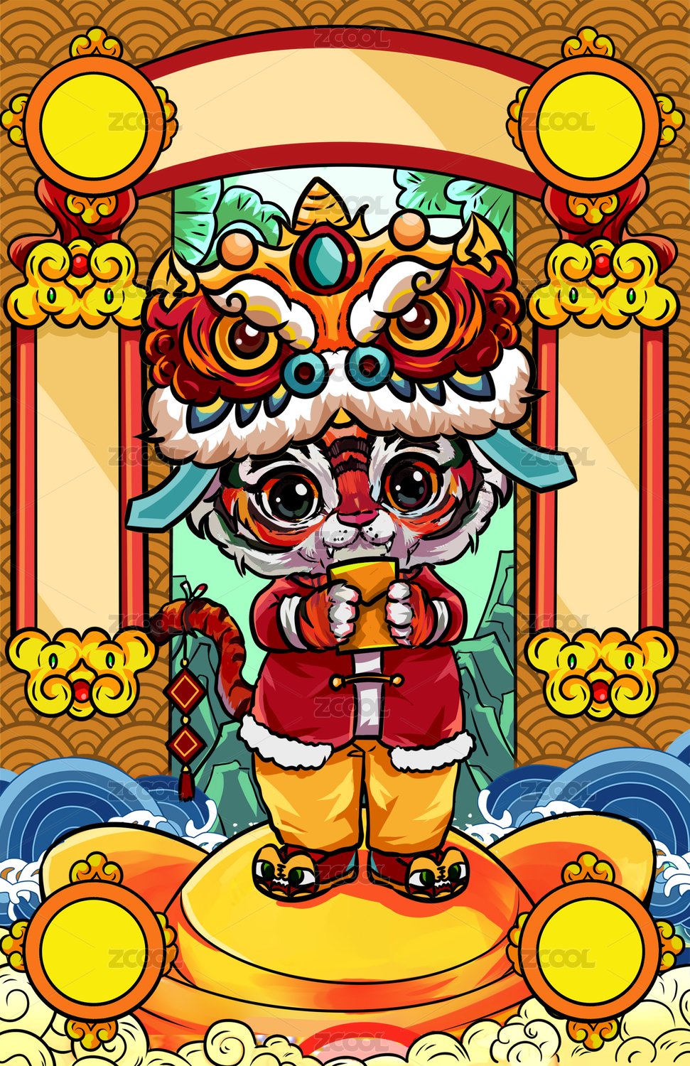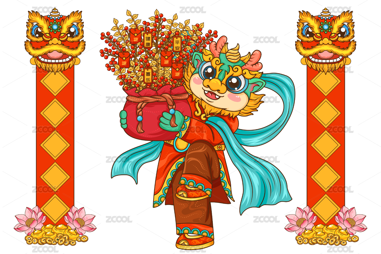 矢量中国风龙年生肖拜年红包电商喜庆促销