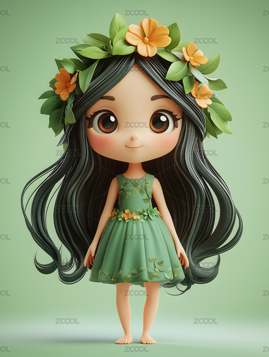 卡通清新时尚度假风长发美少女头像插画