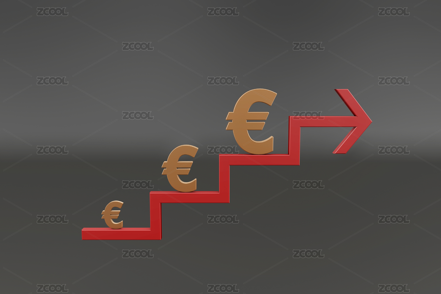 欧元货币符号组成的成功箭头与数据图表,代表了经济的增长与货币升值
