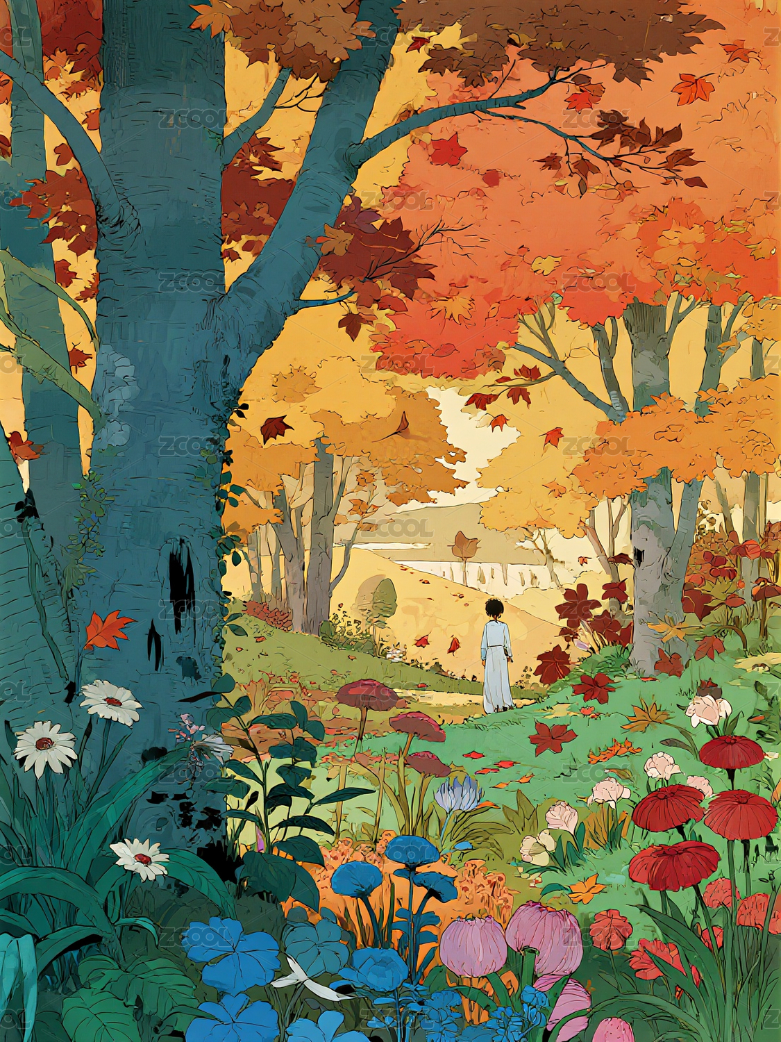 白底明亮梦幻树叶浓密的蓝色大树插画绘画
