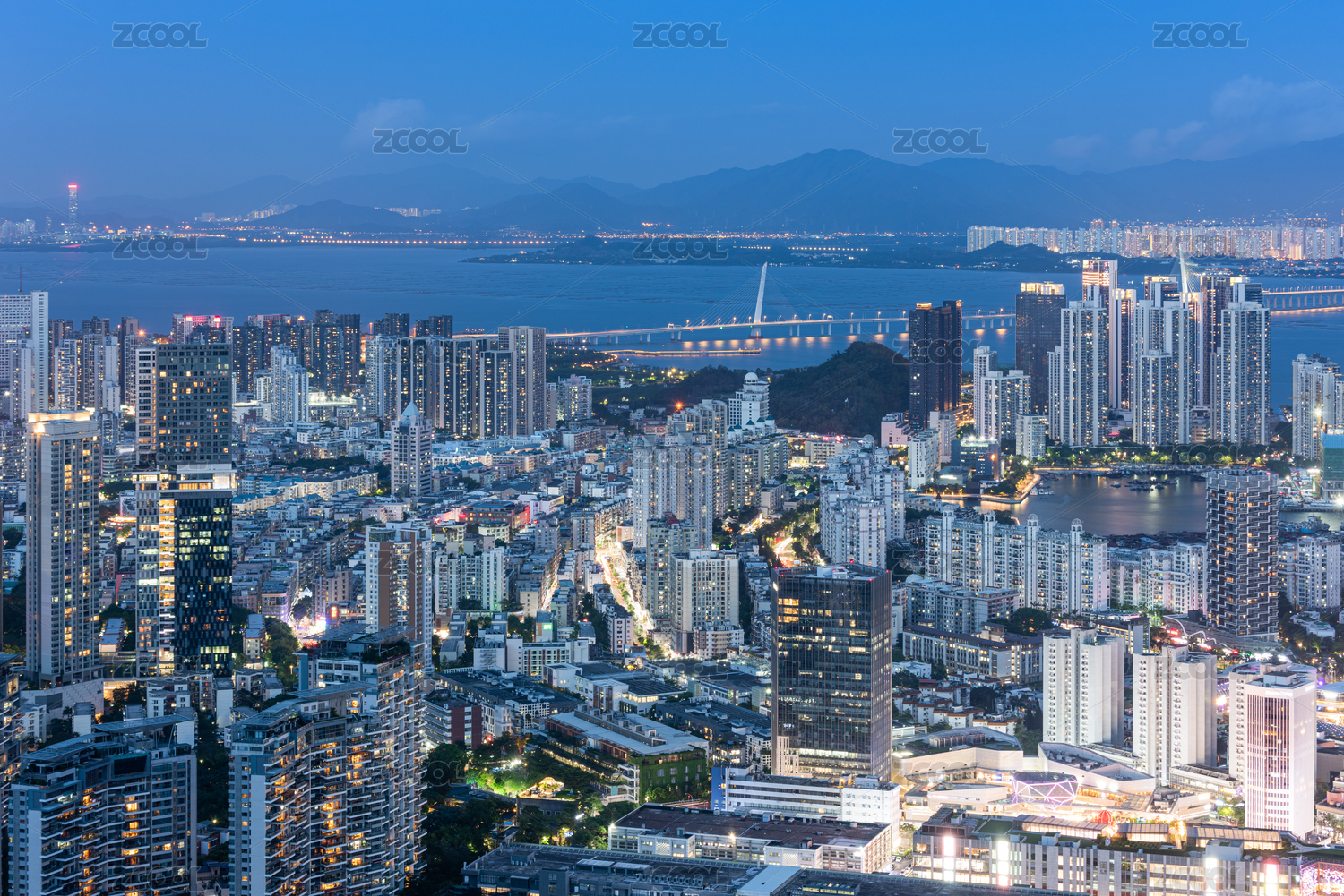 中国广东省深圳市南山区俯瞰南山城市夜景