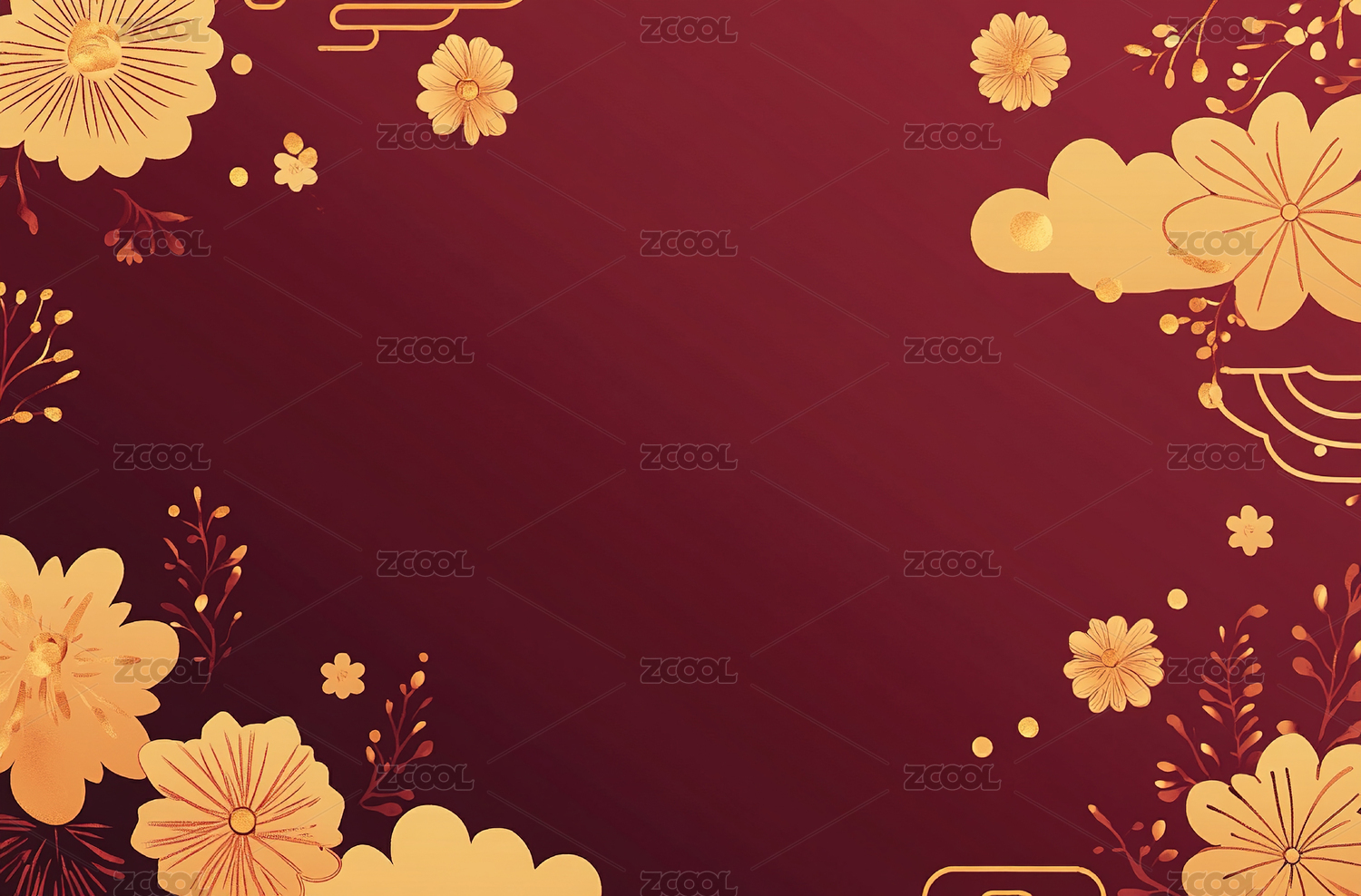 红色背景下的花朵和金色花朵