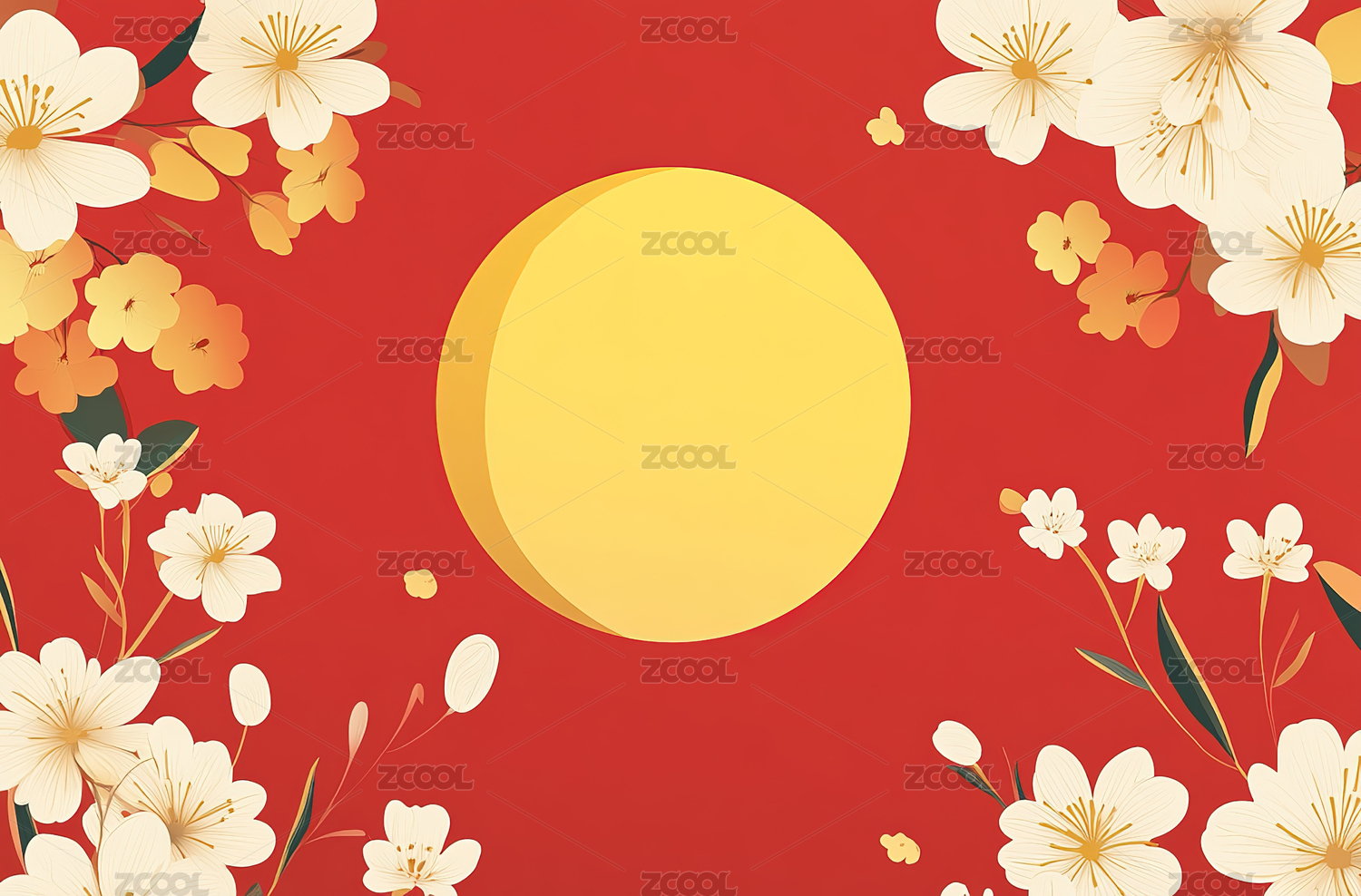圆形边框上点缀梅花装饰的红色简约图案
