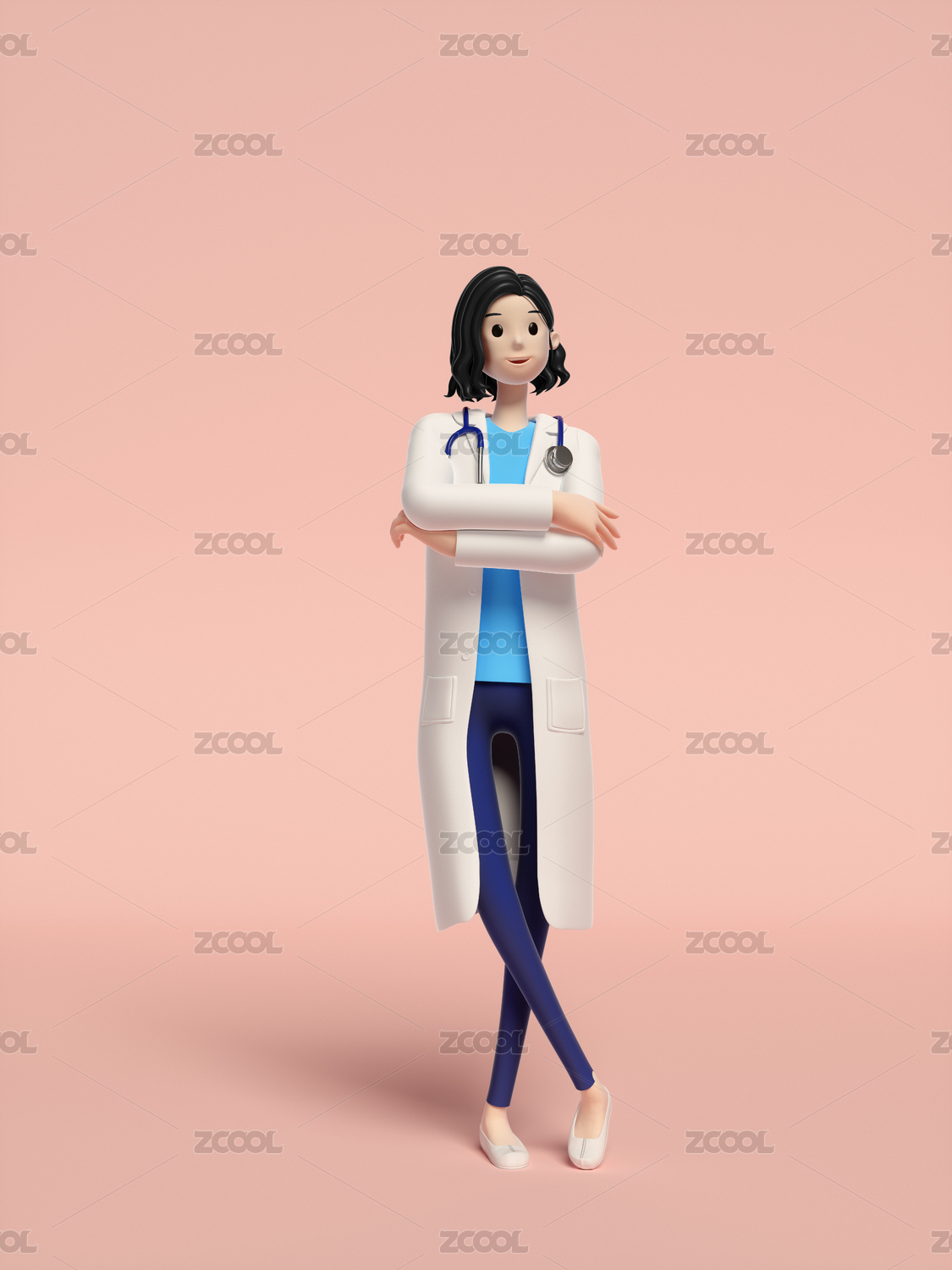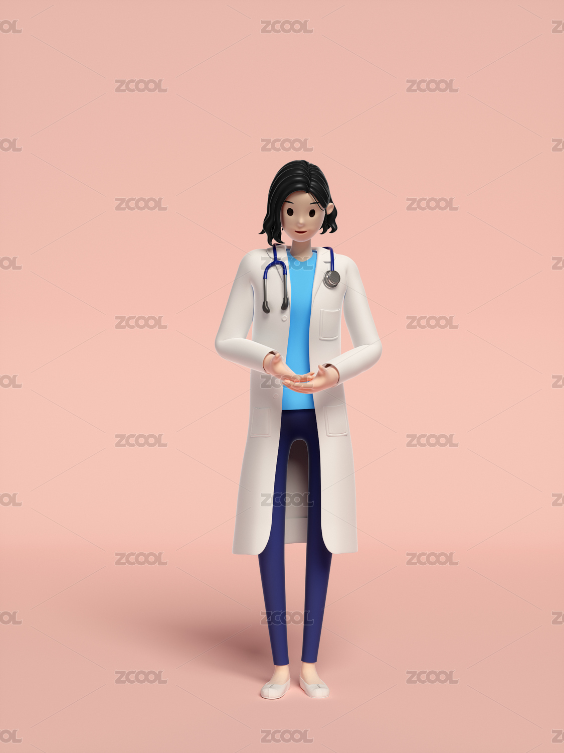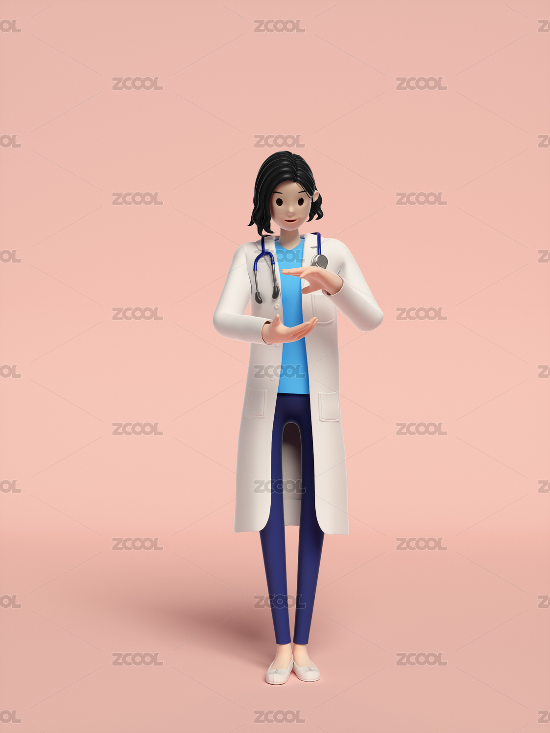 3d,女医生,开心,快乐,微笑,姿势,介绍,三维,医疗
