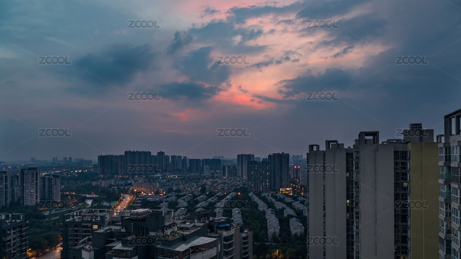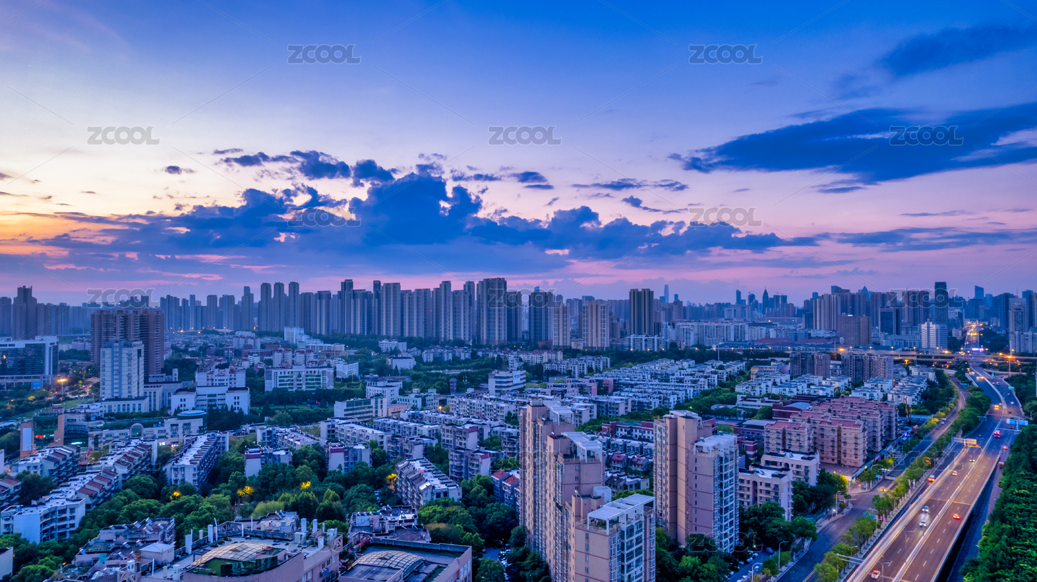 武汉城市天际线高楼大厦日落黄昏天空晚霞