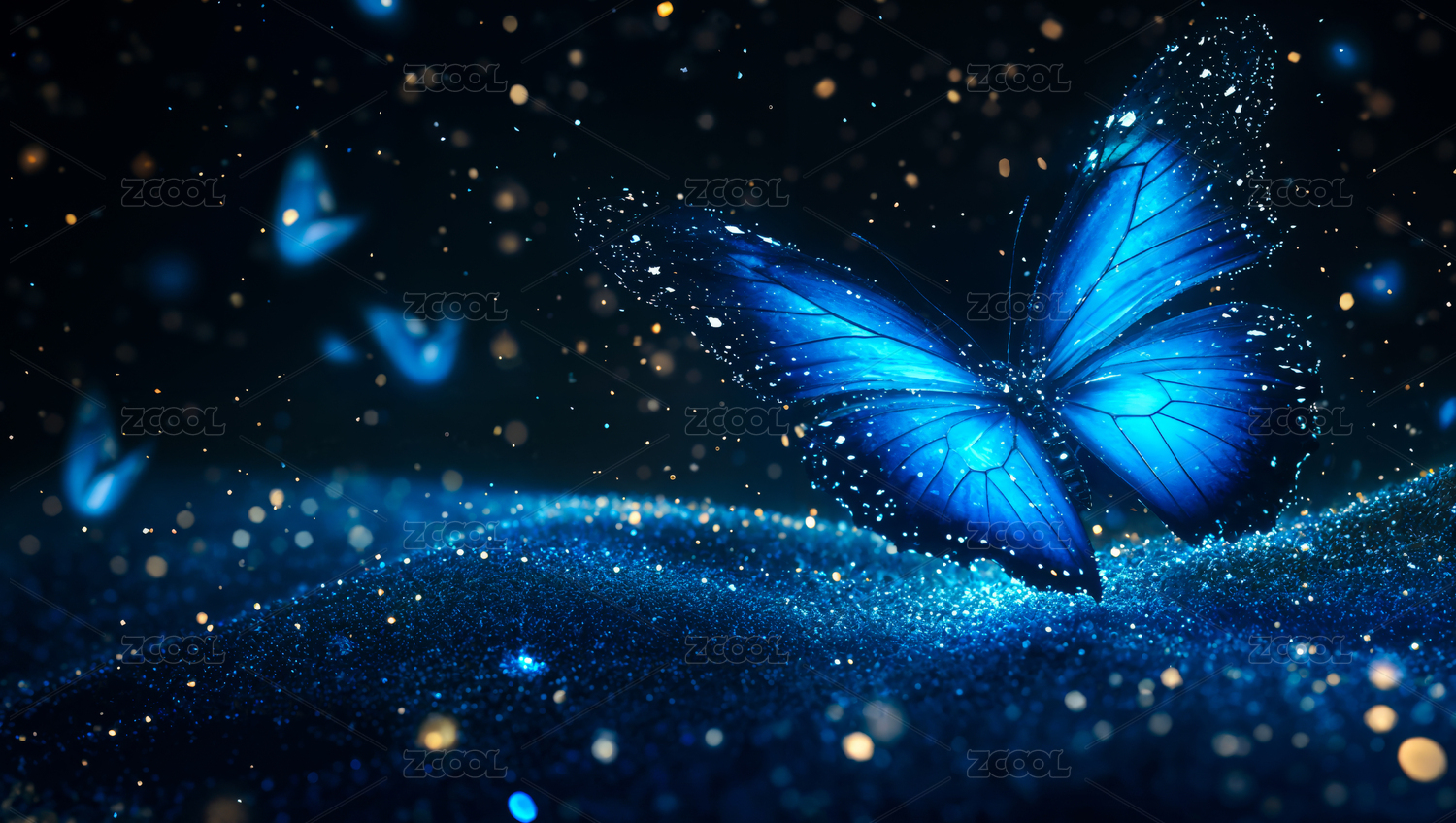 蓝色蝴蝶飞翔梦幻场景