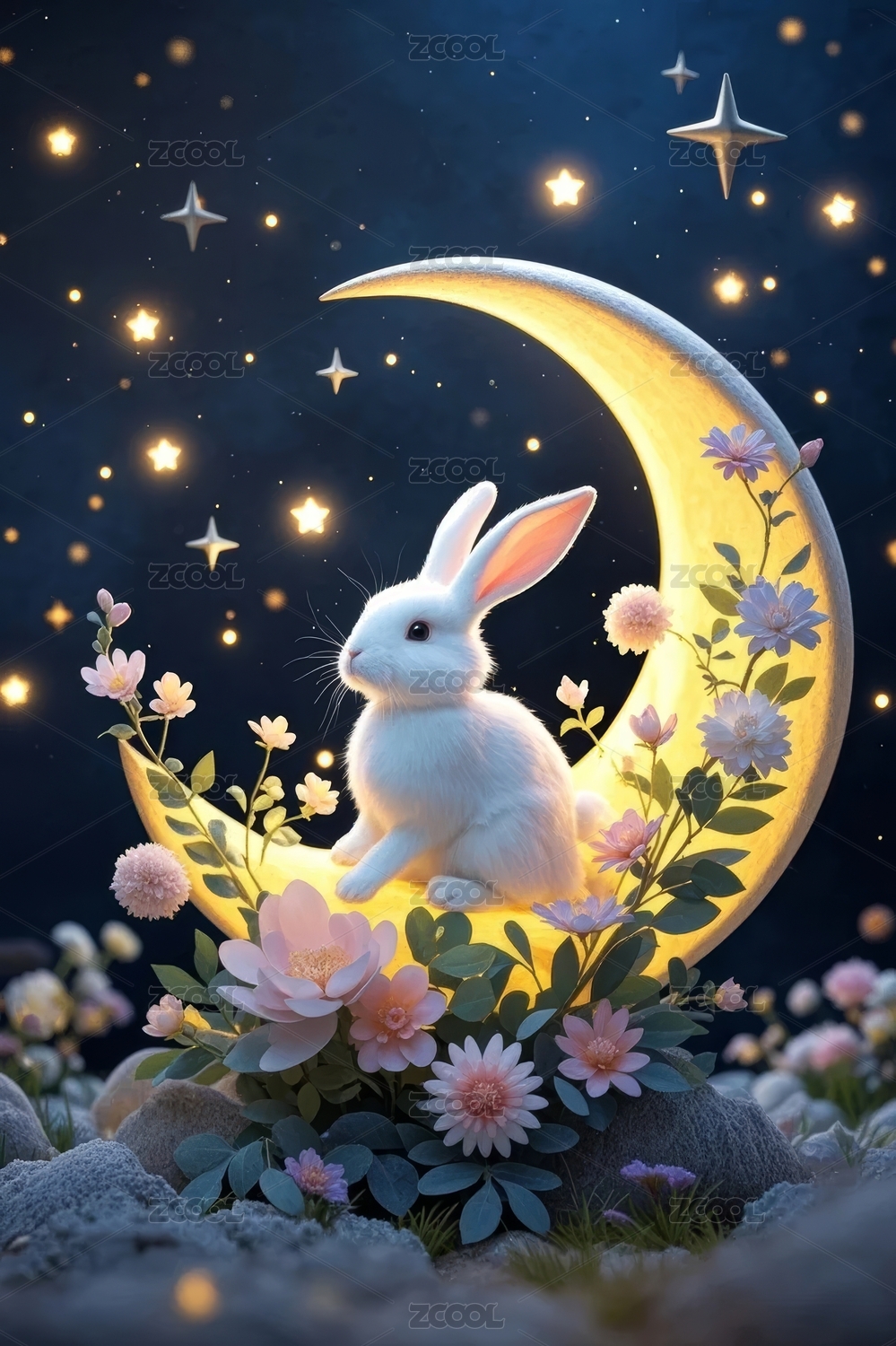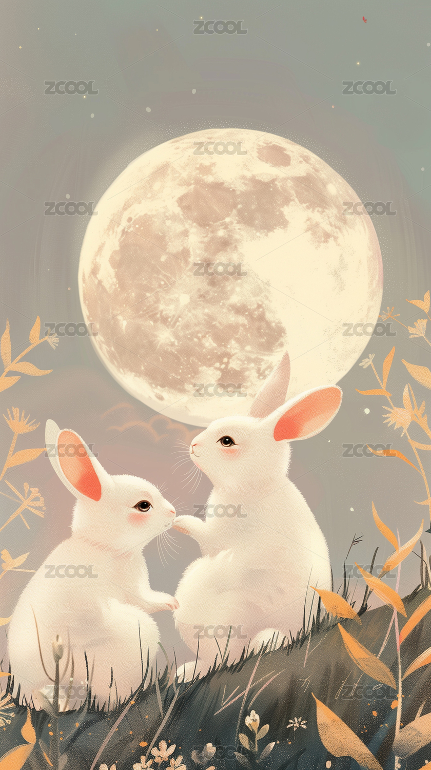 AIGC202403,传统,文化,中秋节,节日,插画,插图,月亮,月,月兔