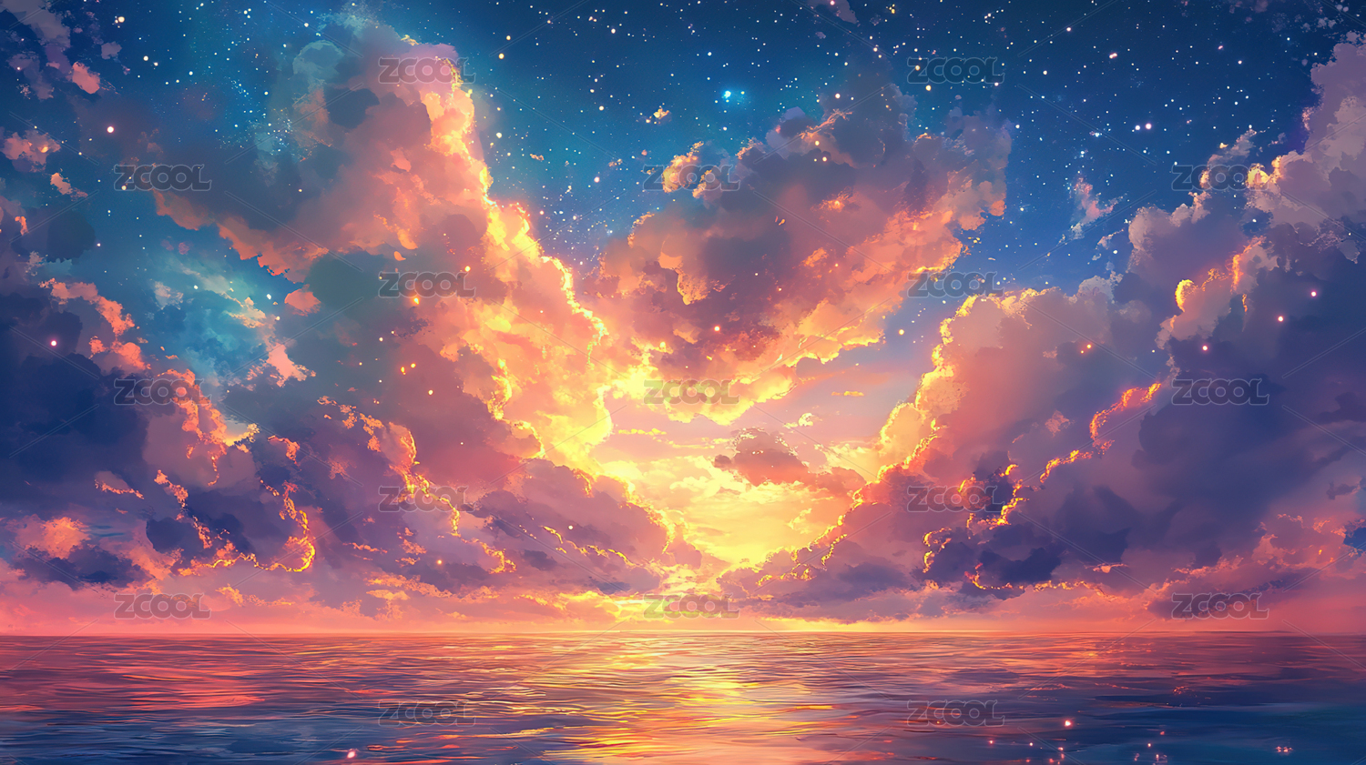 插画,卡通,夜晚,背景,景观,美丽,晚上,星空,星系,银河