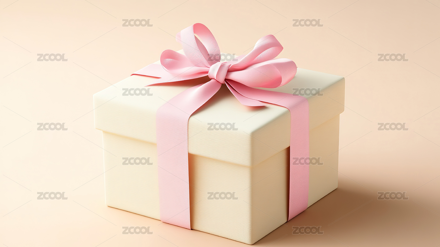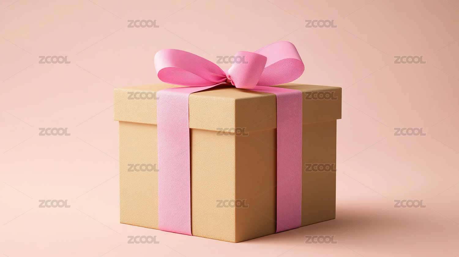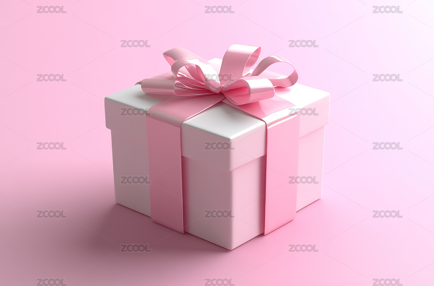 一个粉红色礼物盒子上面一个粉红色蝴蝶结图