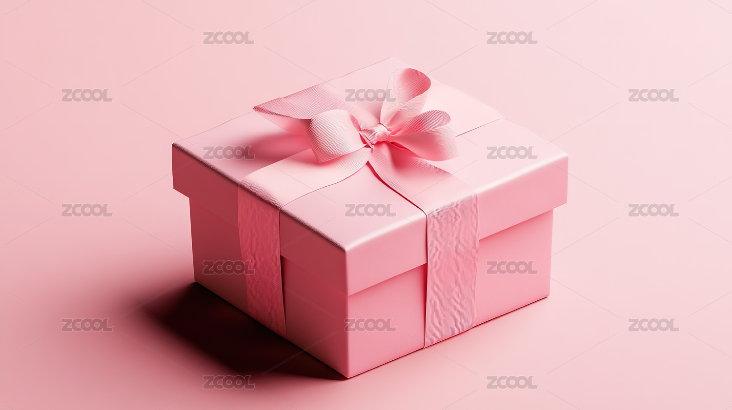一个粉红色礼物盒子上面一条粉红色丝带图片