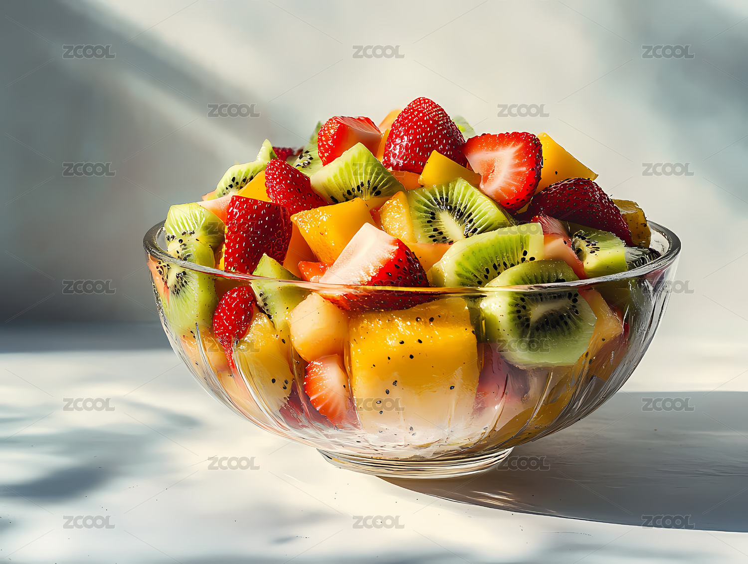 水果沙拉,沙拉酱,火龙果,奇异果,黄桃,玻璃碗,点心,下午茶,食品,美食
