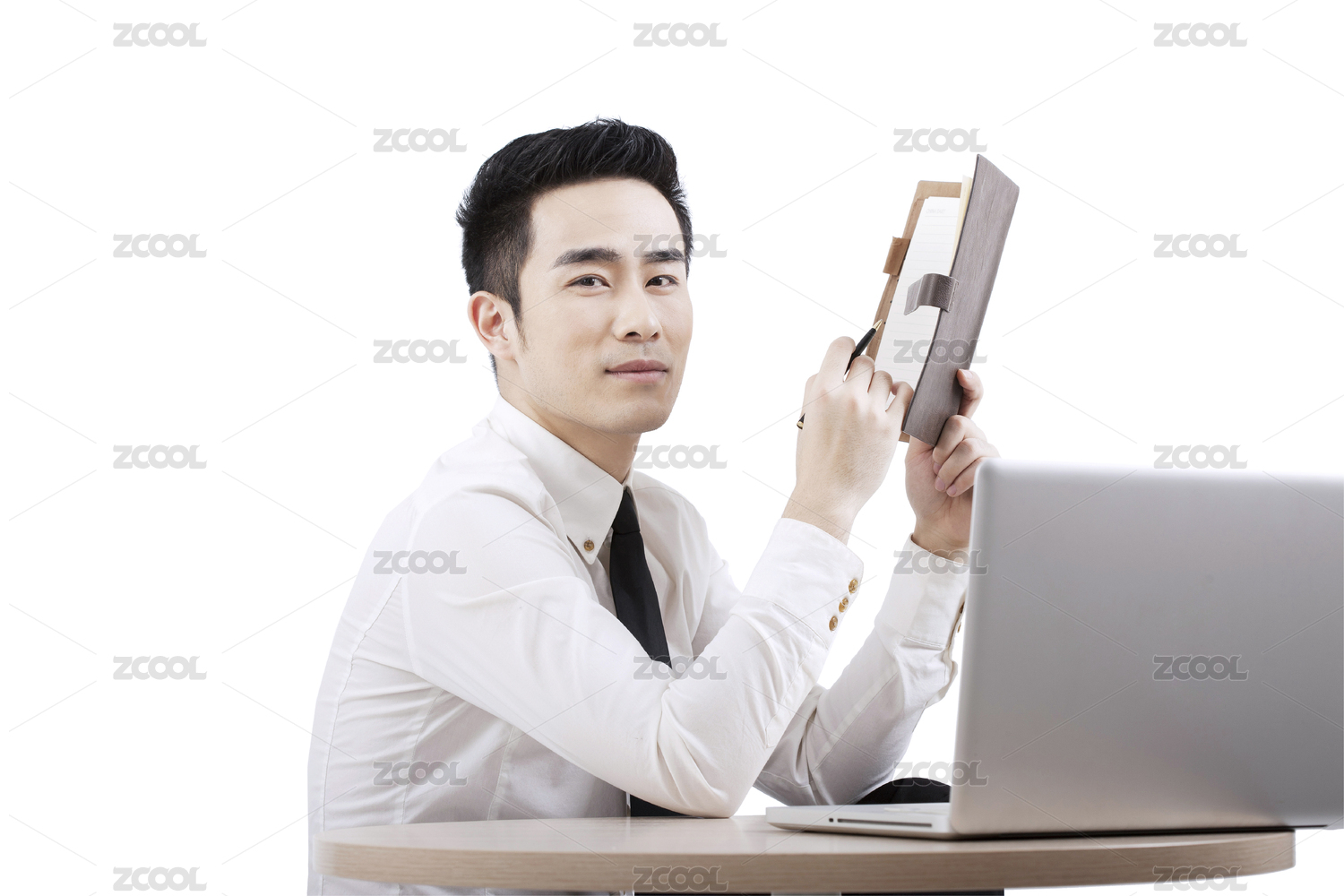 坐在桌子旁边写字办公的亚洲商务男士, 金融商业保险