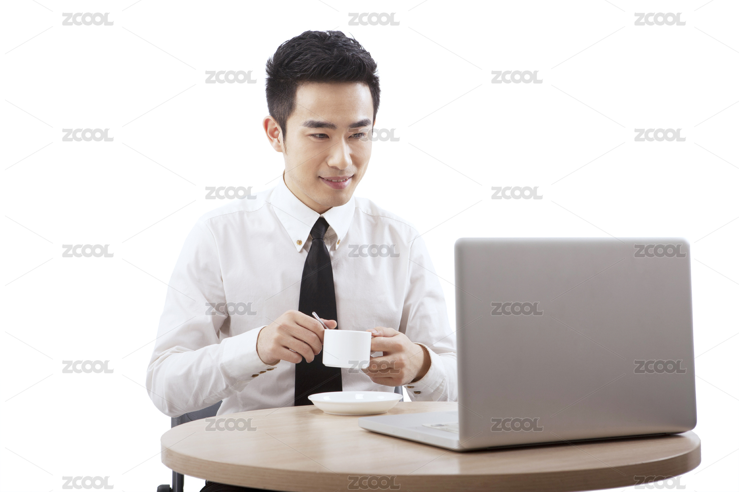 亚洲商务男士坐在桌子旁边正在使用电脑, 金融商业保险