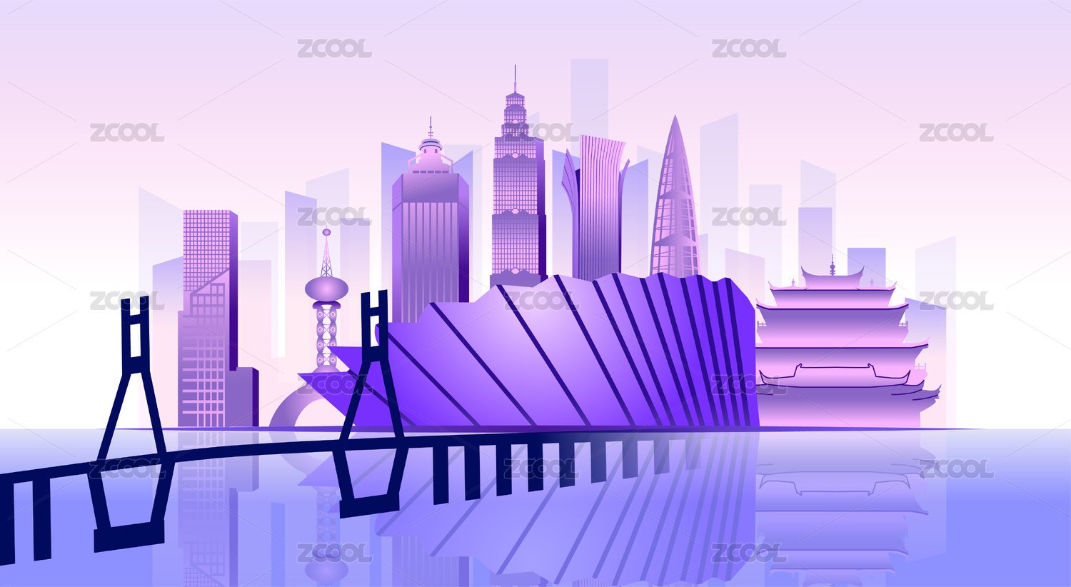 中国浙江省宁波市商务科技城市彩色矢量插画
