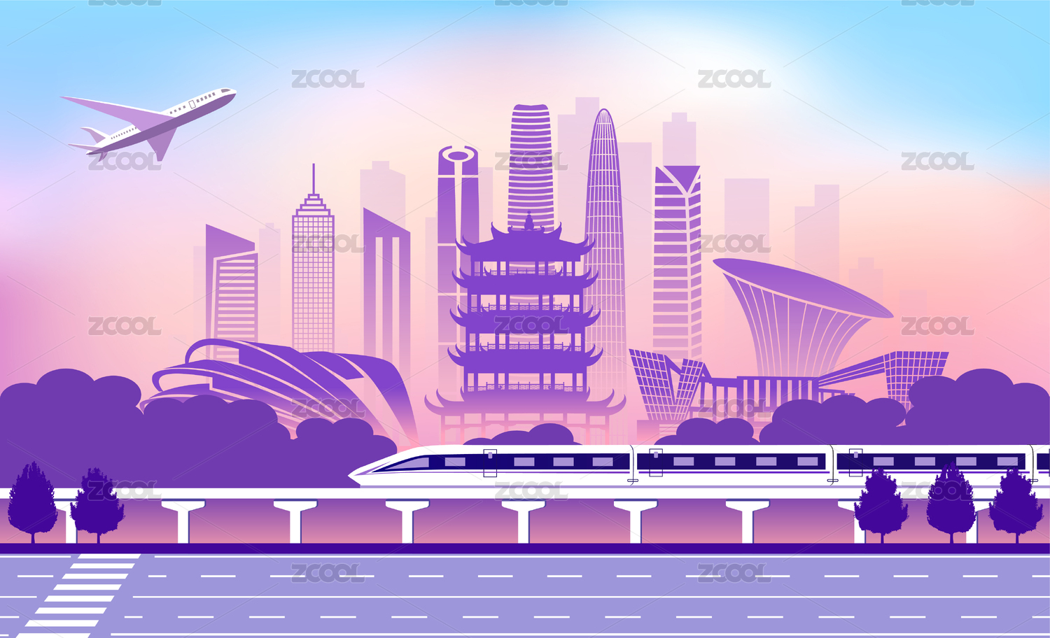 中国湖北省武汉市城市旅游交通商务插画紫色