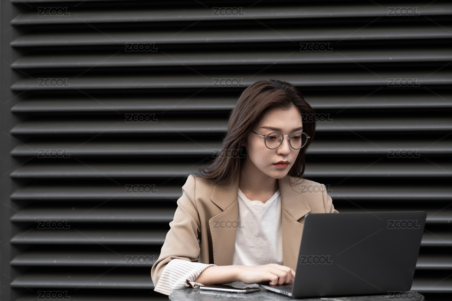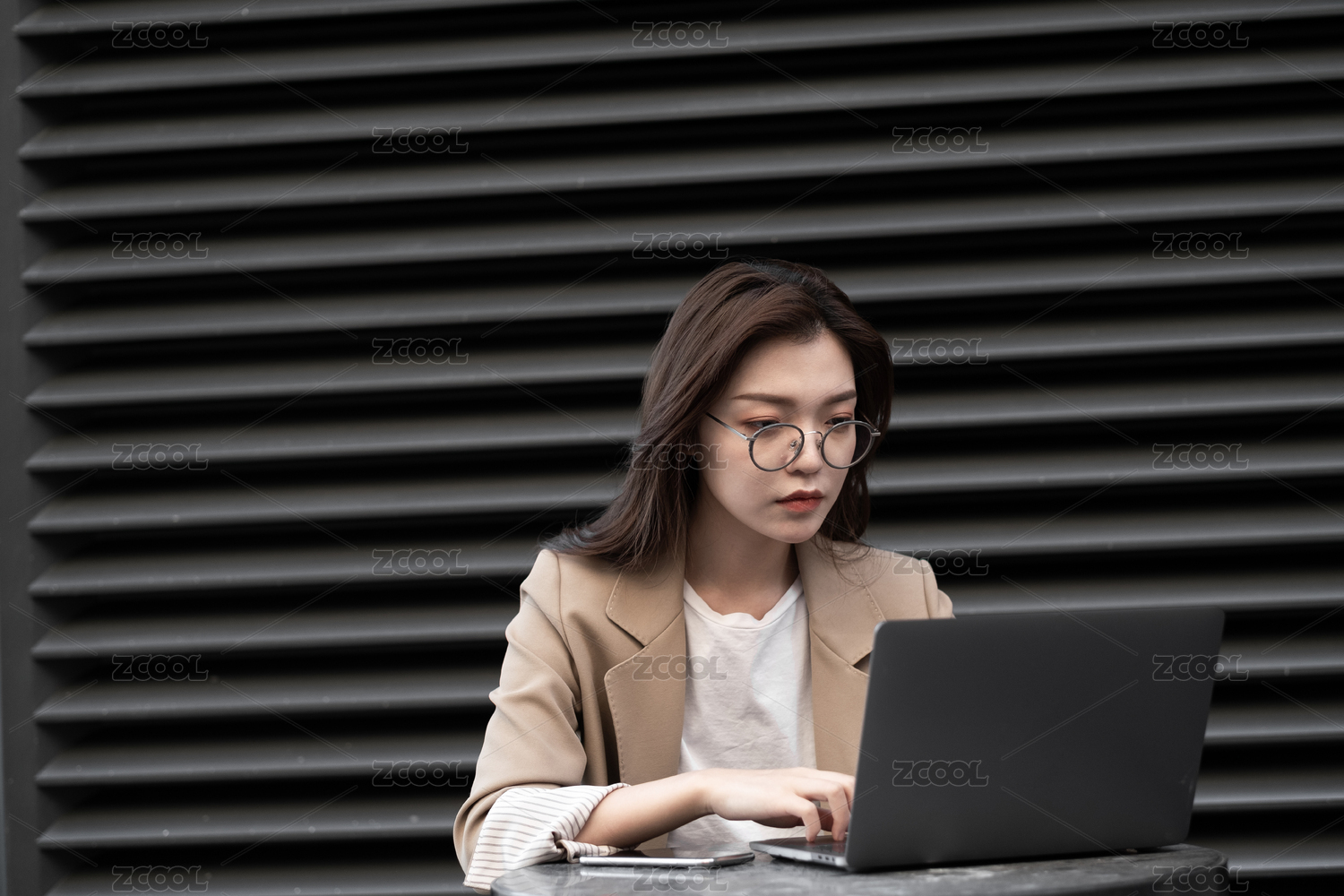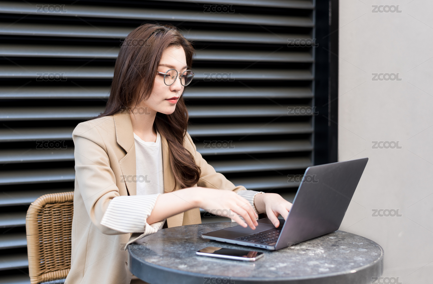 年轻商务女士在户外办公