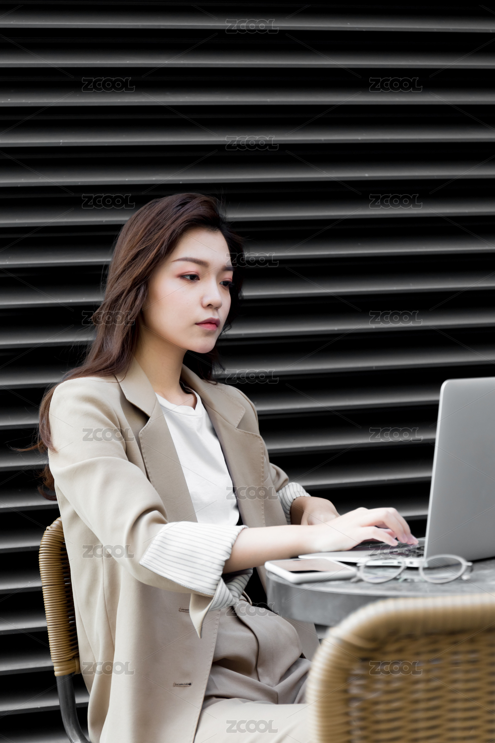 一个休闲商务形象的中国年轻女性