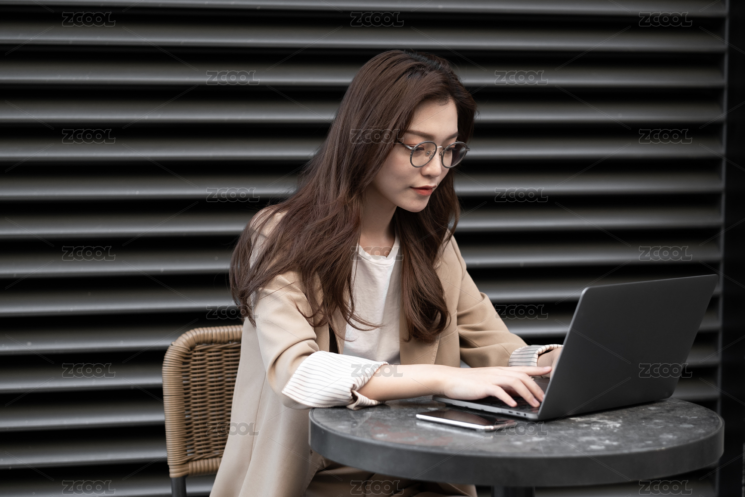 年轻女士在户外使用电脑办公