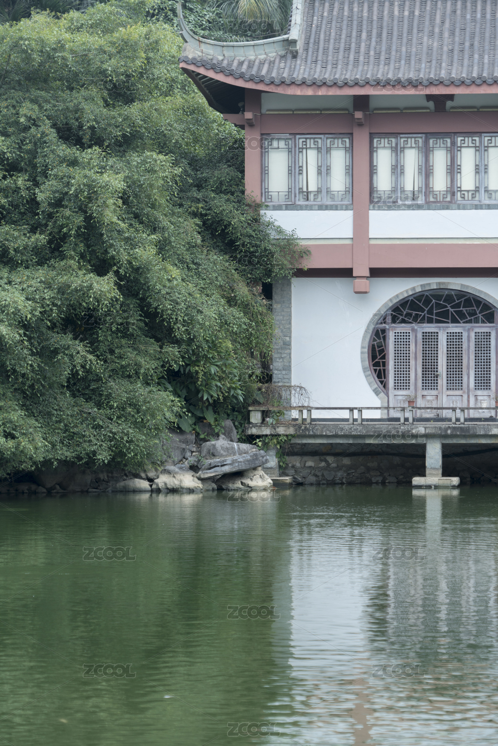 中国广东省佛山祖庙孔圣园内的古亭子园林景观