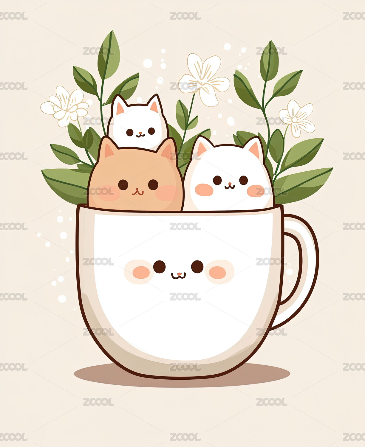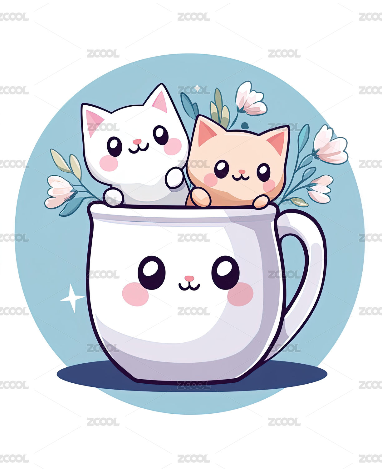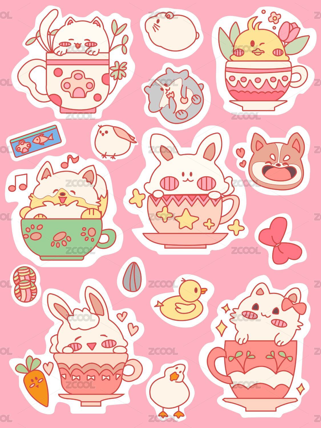 萌宠贴纸茶杯犬可爱粉色卡通插画