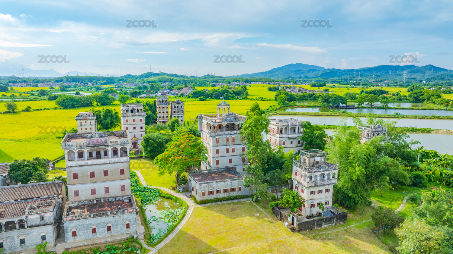 蓝天,晴天,天际线,树,绿色,阳光,侨乡,近现代,村落,乡村