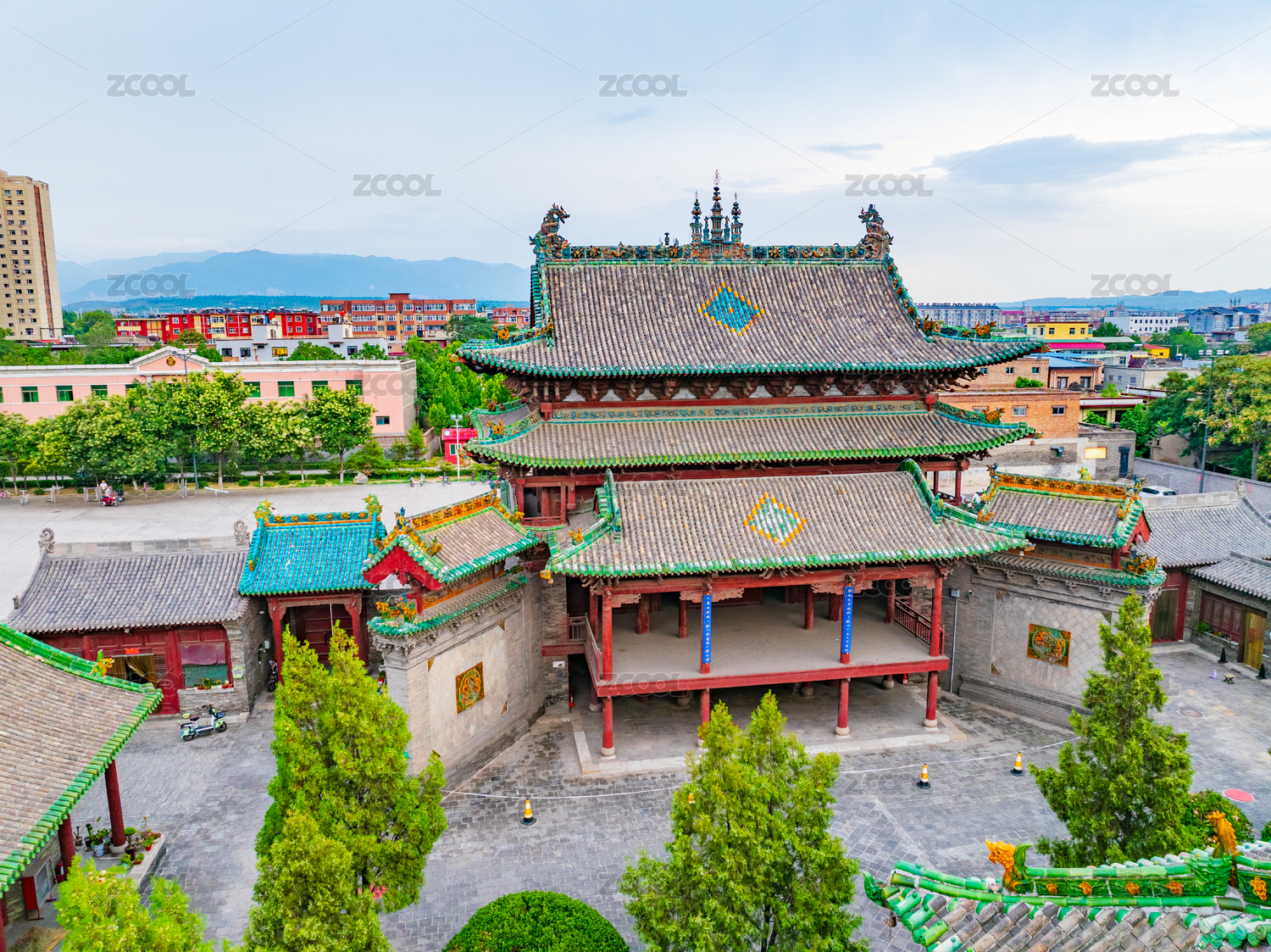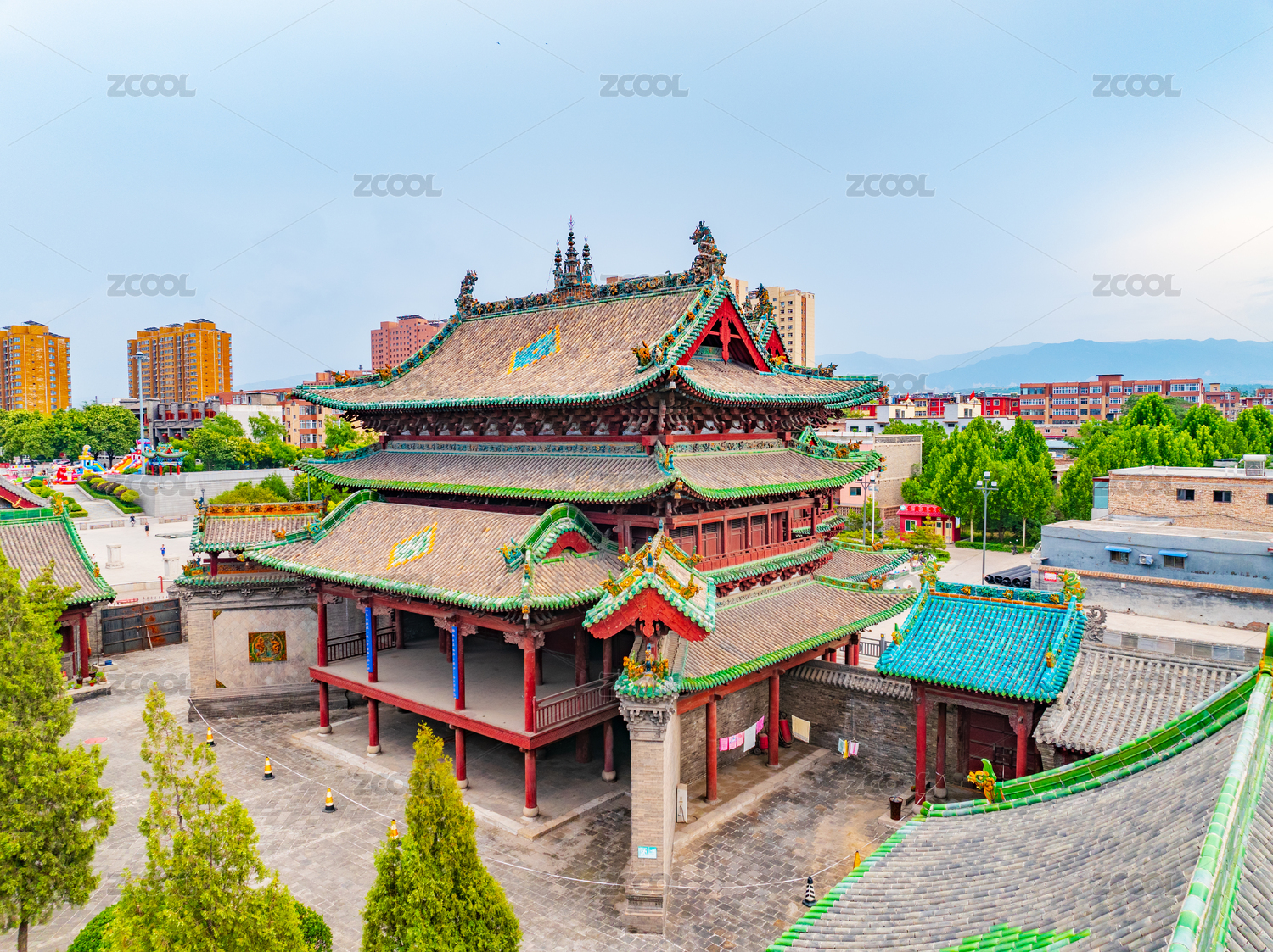 山西,晋中,介休,祆神楼,古建筑,寺庙,寺院,琉璃,青色,瓦