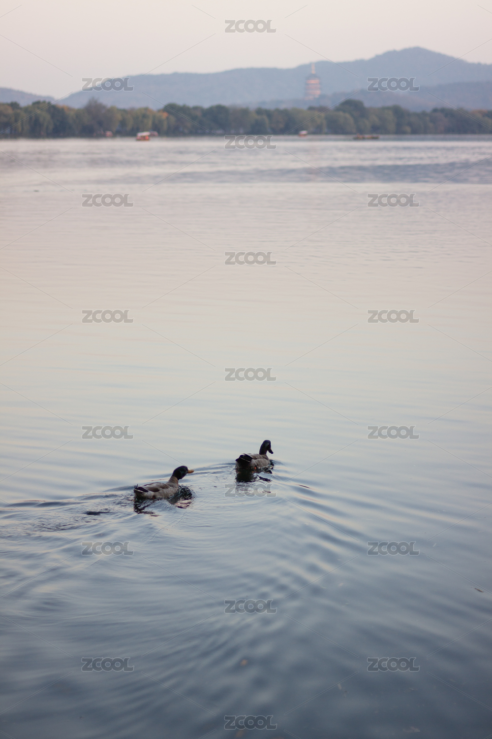 西湖里的野鸭