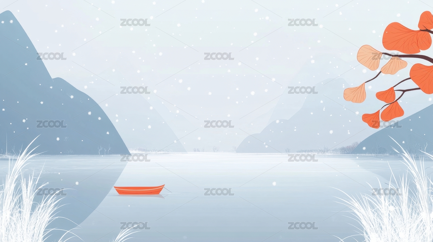 卡通手绘唯美冬天雪景小寒大寒冬季插画