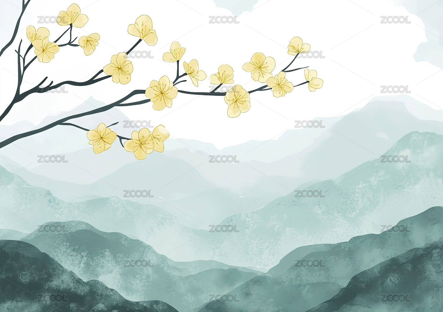水墨,风景,远景,国风,水墨画,节气,霜降,24节气,中国风,古风