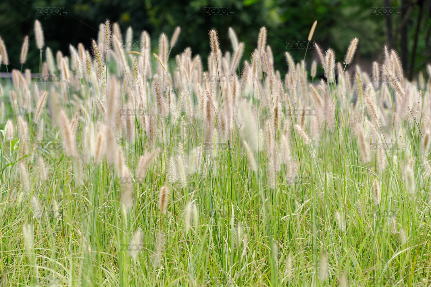 河岸边种植的茂盛的芦苇和狗尾巴草