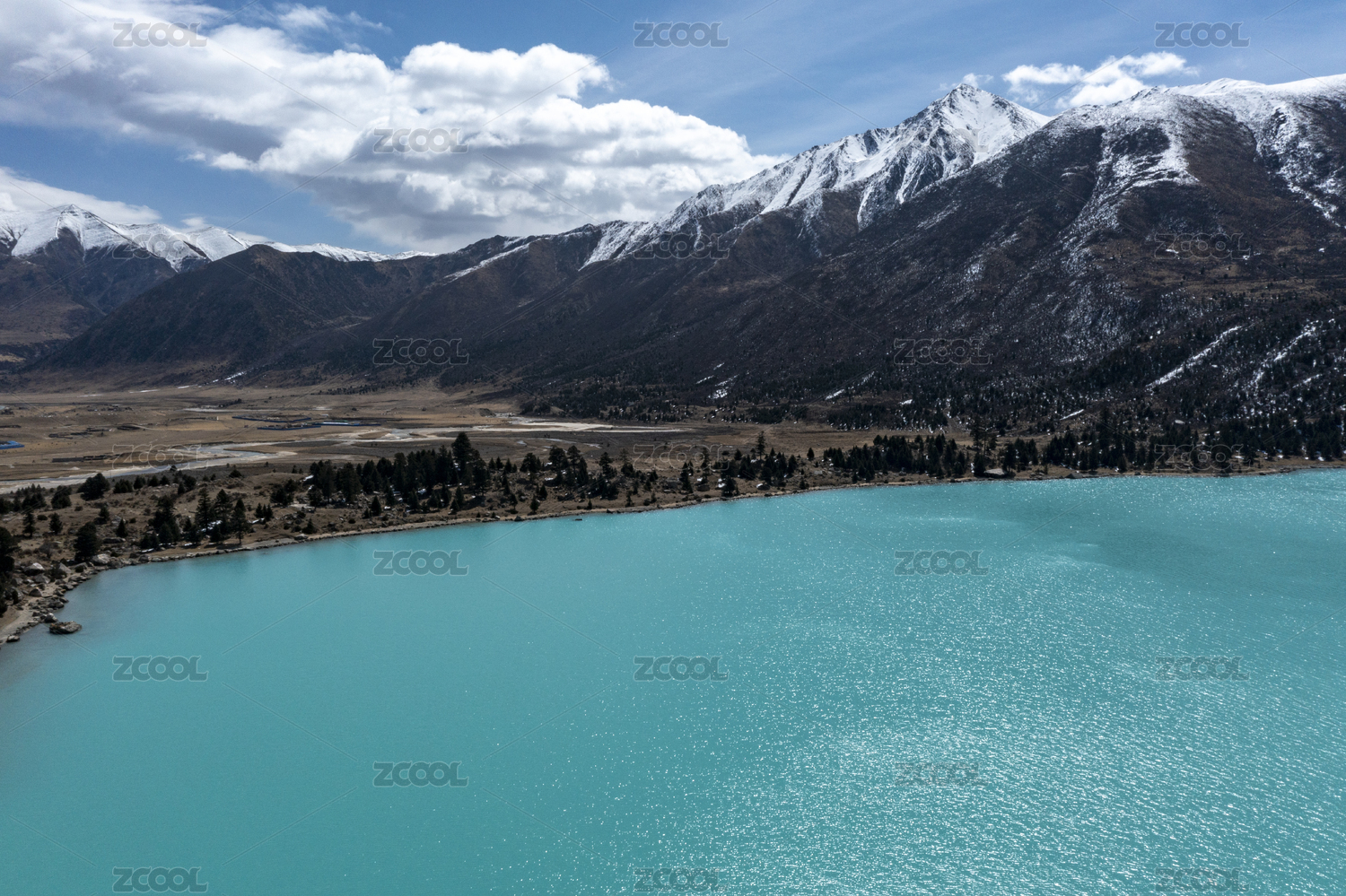 航拍,玉蕯拉措,反射,天空,雪山,德格