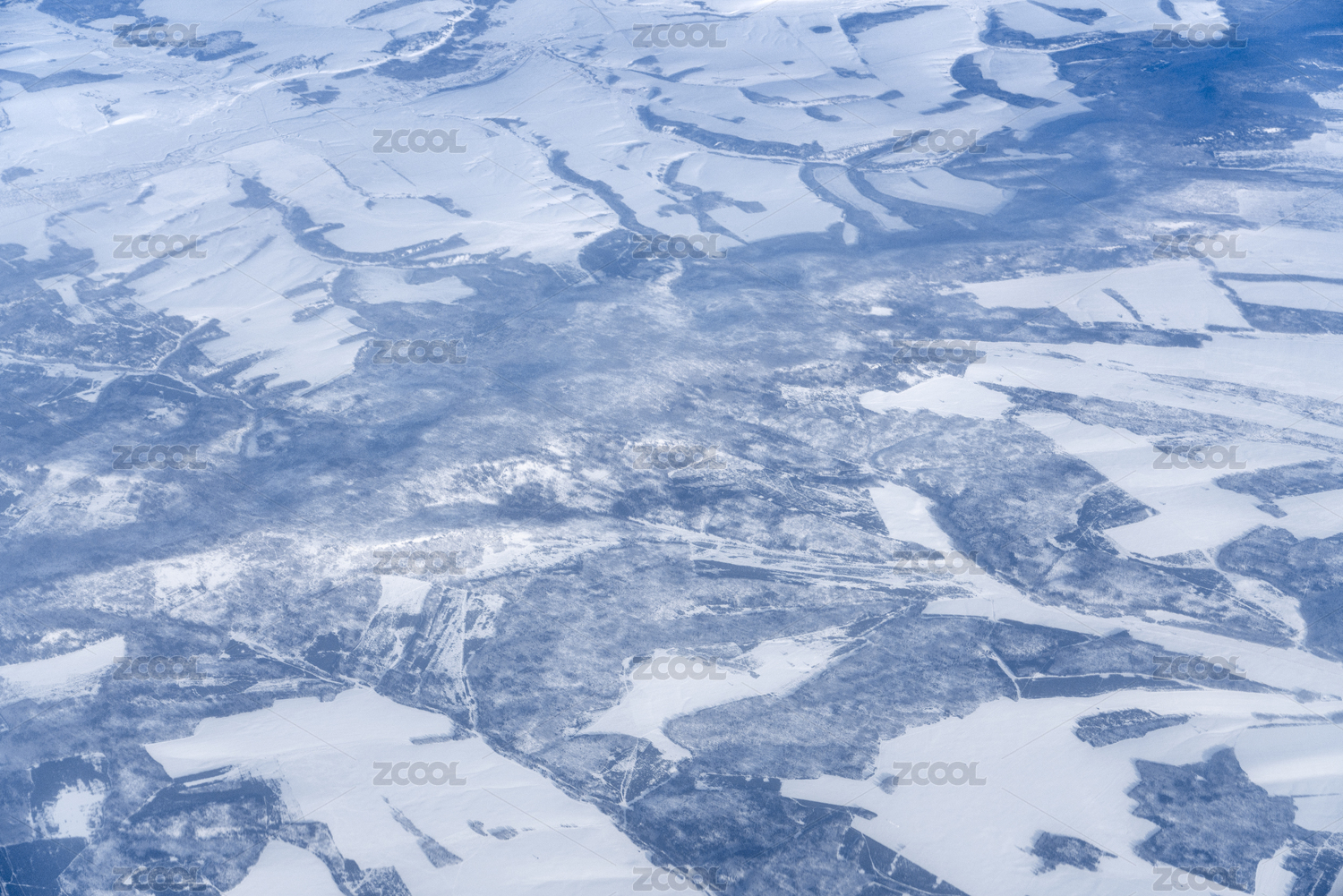 从飞机上鸟瞰北欧冬季的辽阔土地
