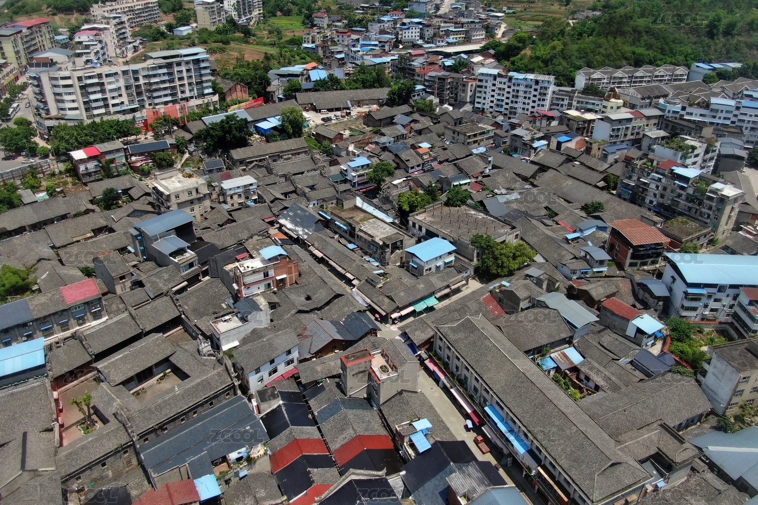 四川省德阳市孝泉古镇半边街航拍