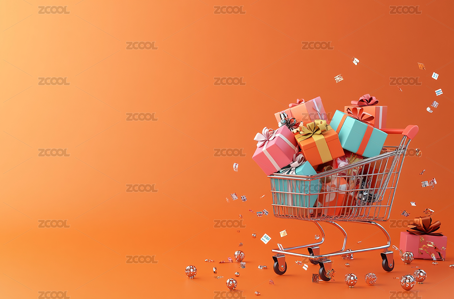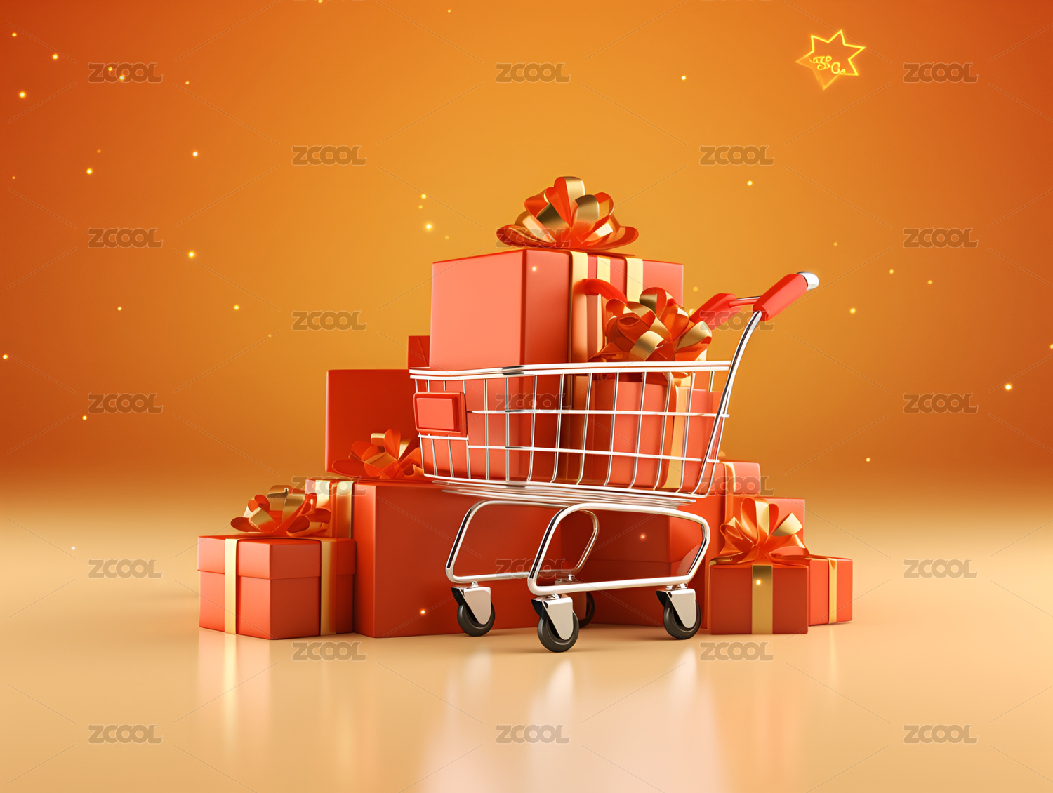 背景,三维,场景,购物车,购物节,年货节,促销,电商,礼品盒,3D
