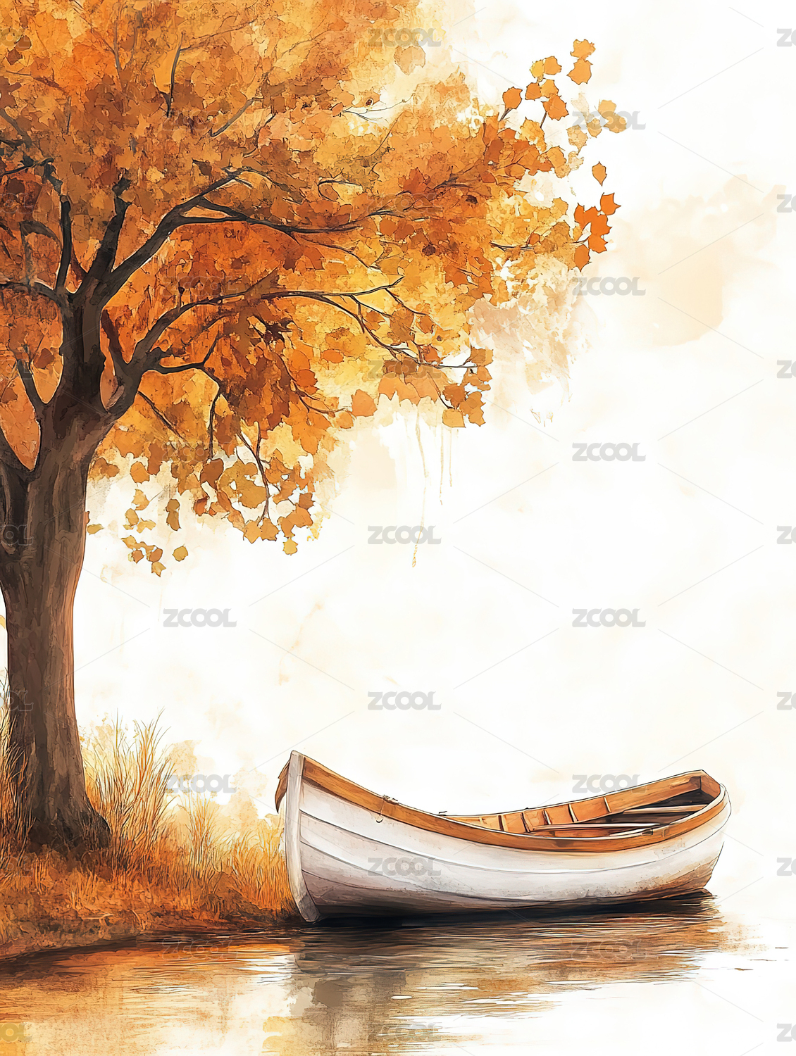 秋日湖畔的小舟