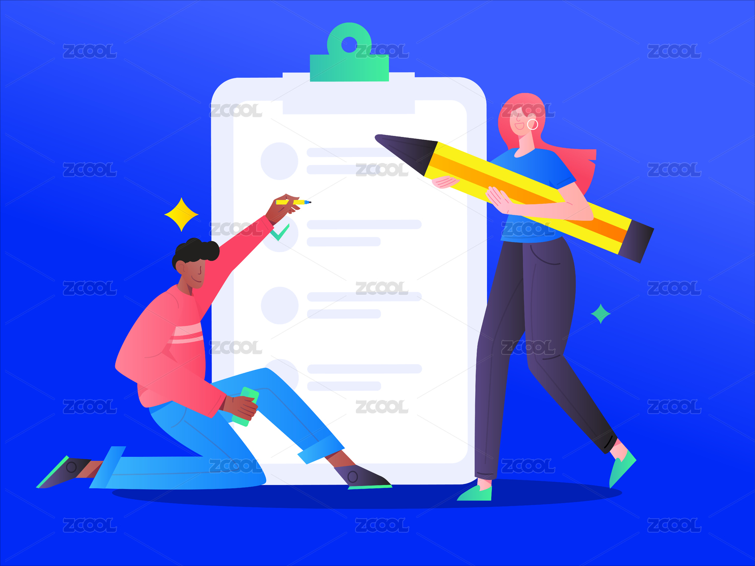 问卷调查的男孩女孩, 矢量扁平人物场景创意概念插画