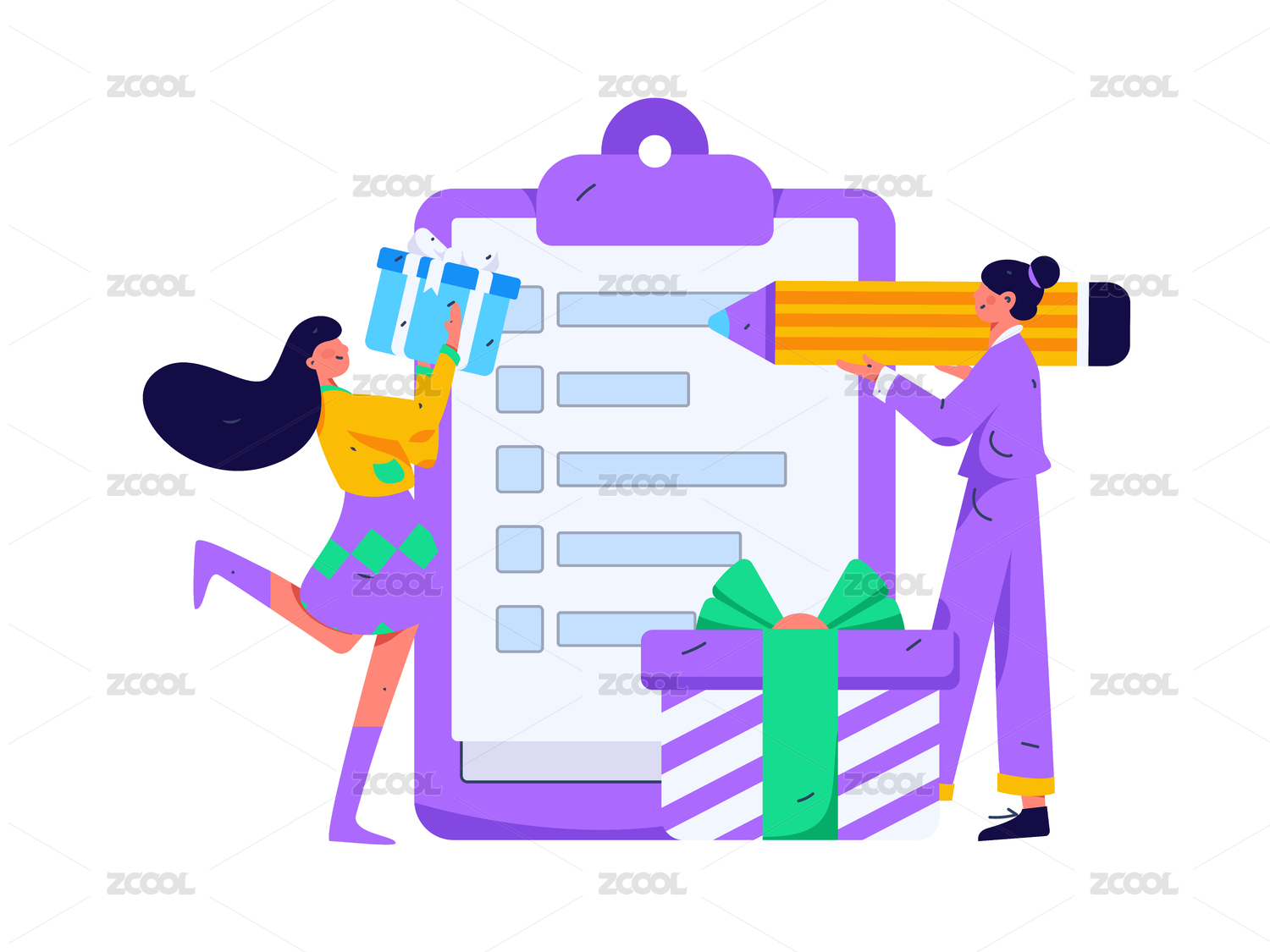 邀请填写问卷调查, 矢量扁平人物场景创意概念插画
