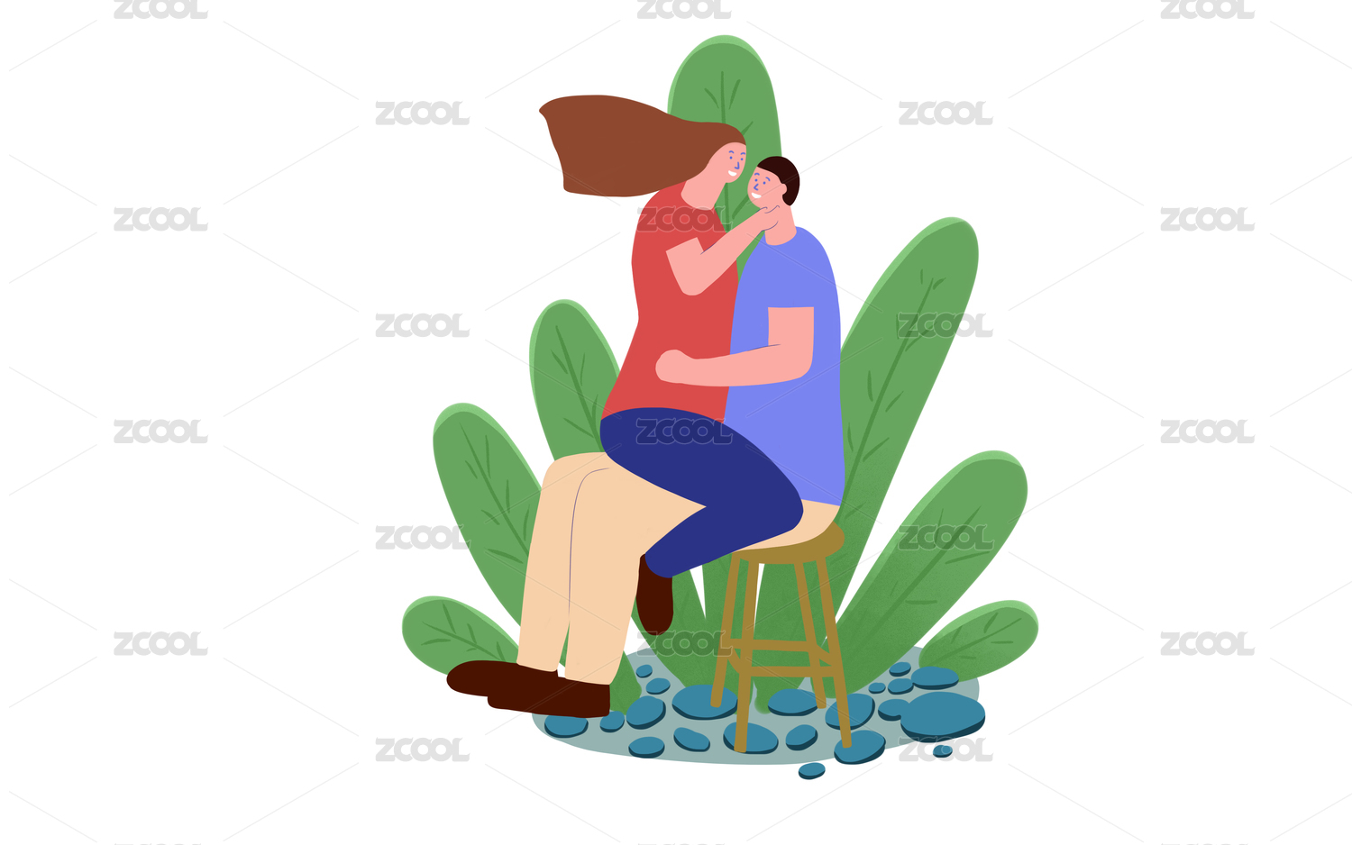 卡通手绘男人抽烟女人生气闪屏海报插画
