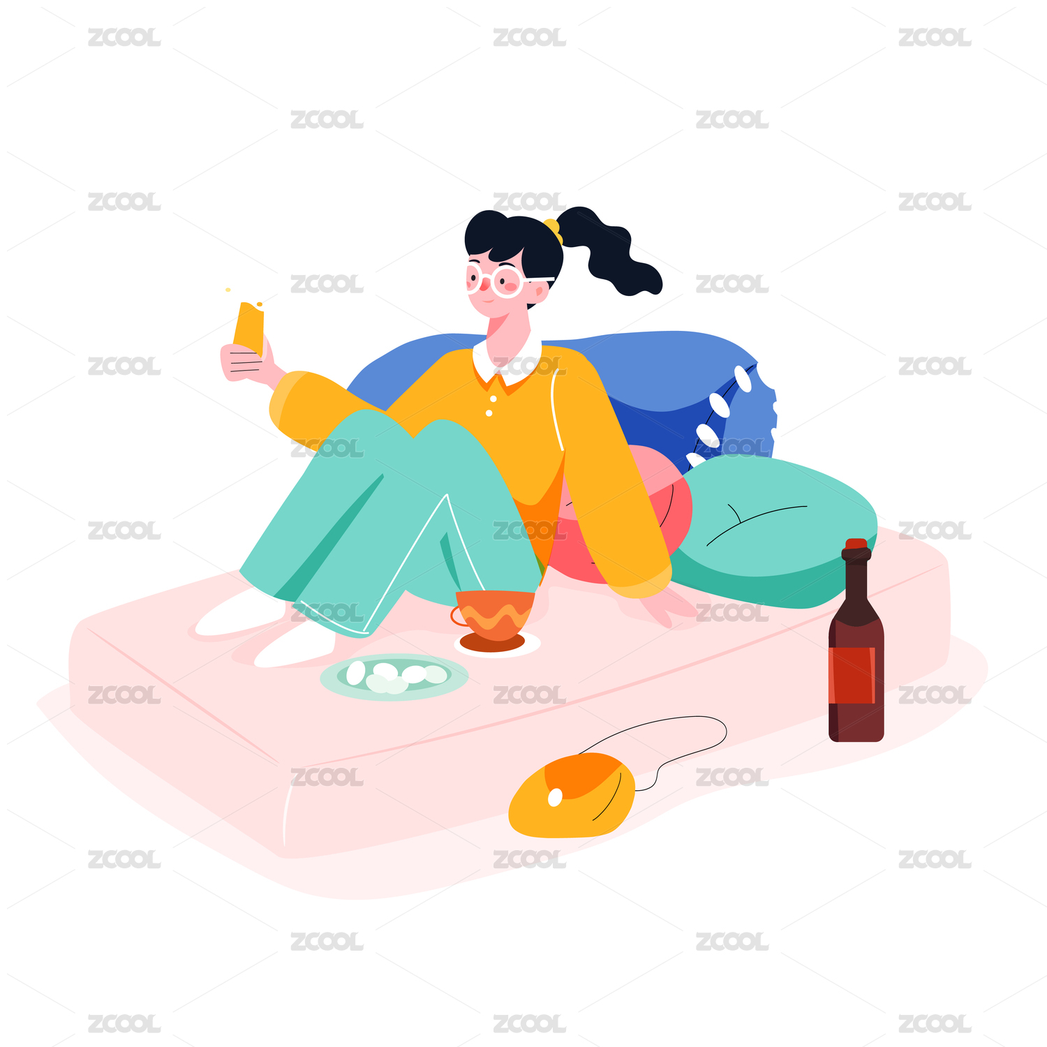 冰糖雪梨黄桃罐头感冒人物素材矢量插画