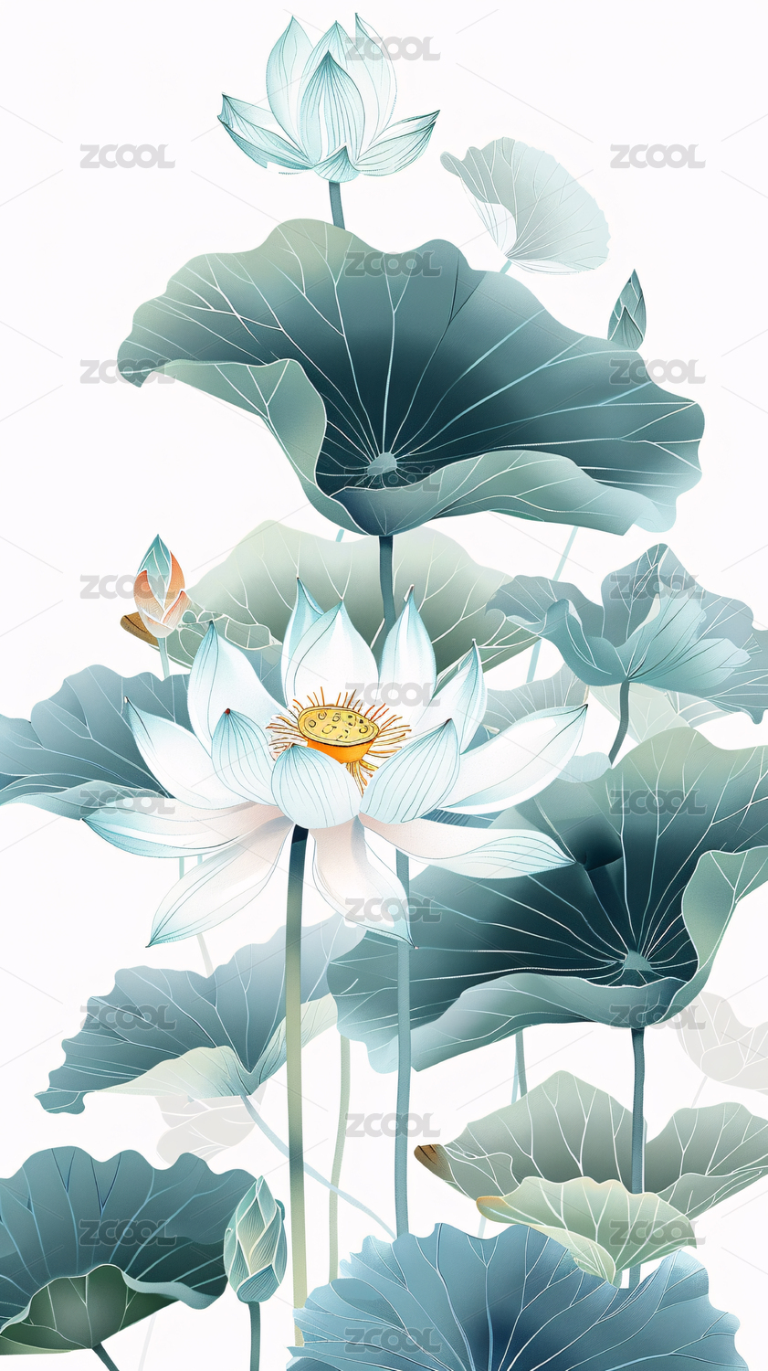 大暑节气夏日荷花夏天池塘荷叶花朵国潮插画
