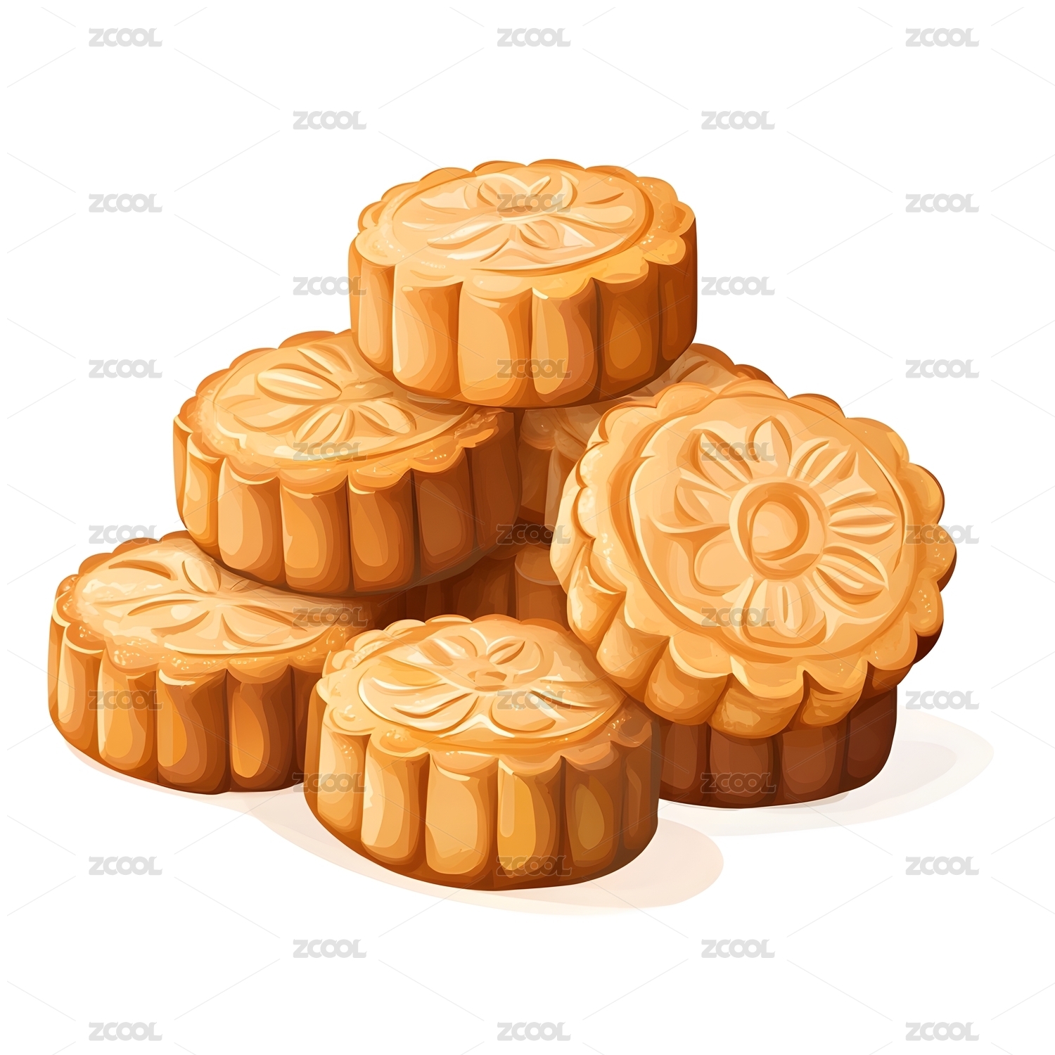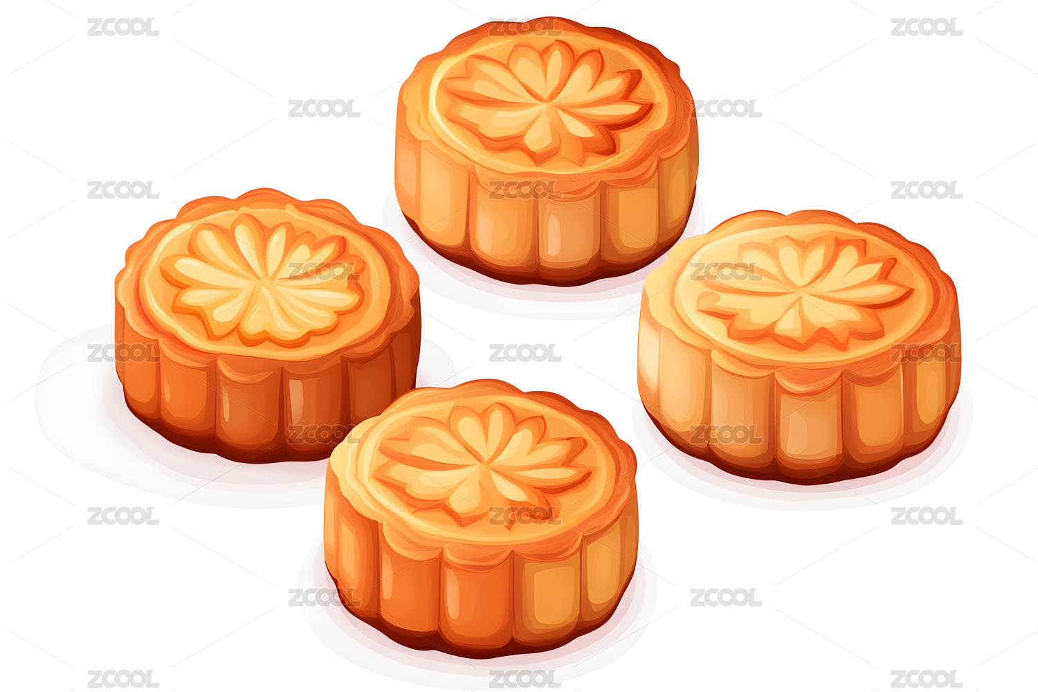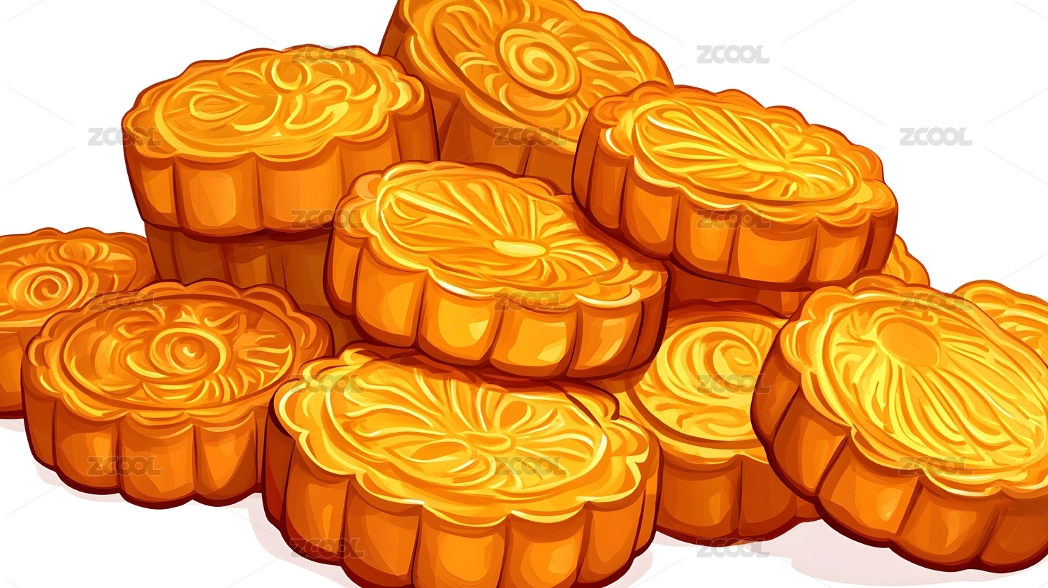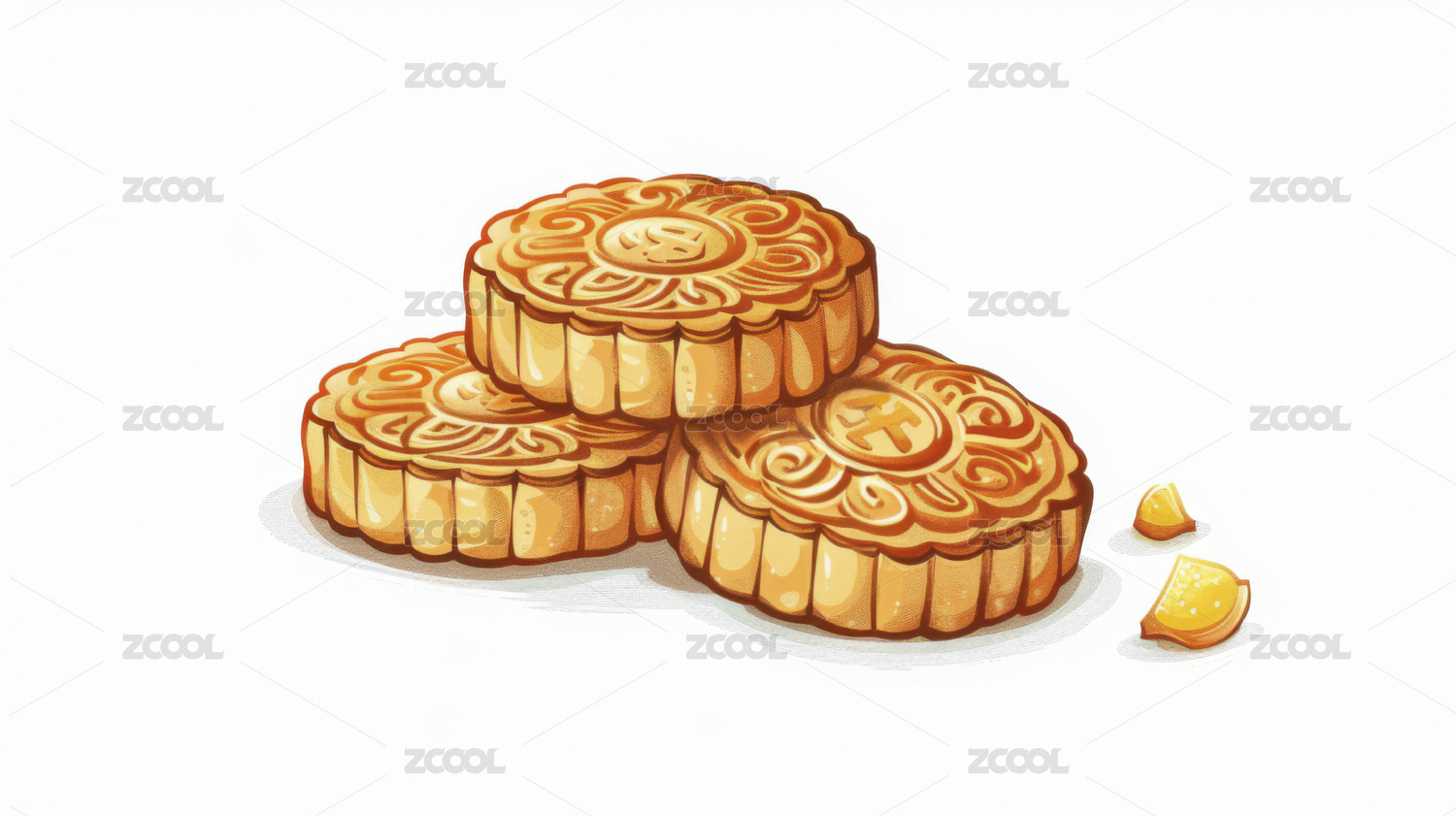 AIGCFG,中式,中国风,国潮风,插画,卡通,月饼,中秋节,节日