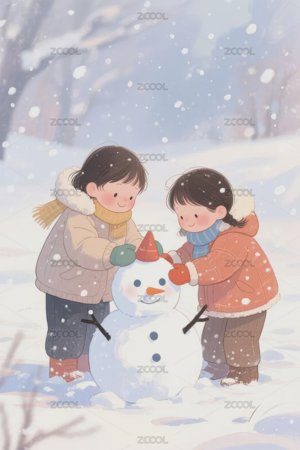 春节,新年,节日,背景,孩子,儿童,卡通,插画,雪人,冬天