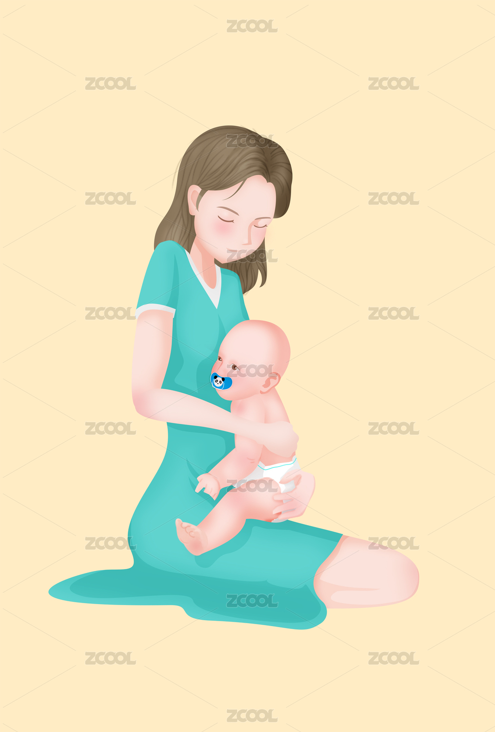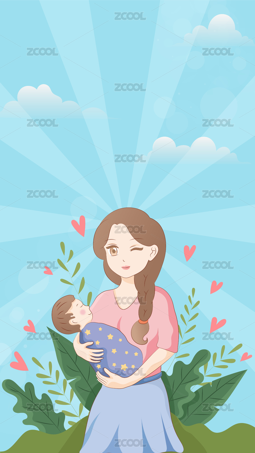 母亲抱着小婴儿竖版插画矢量图