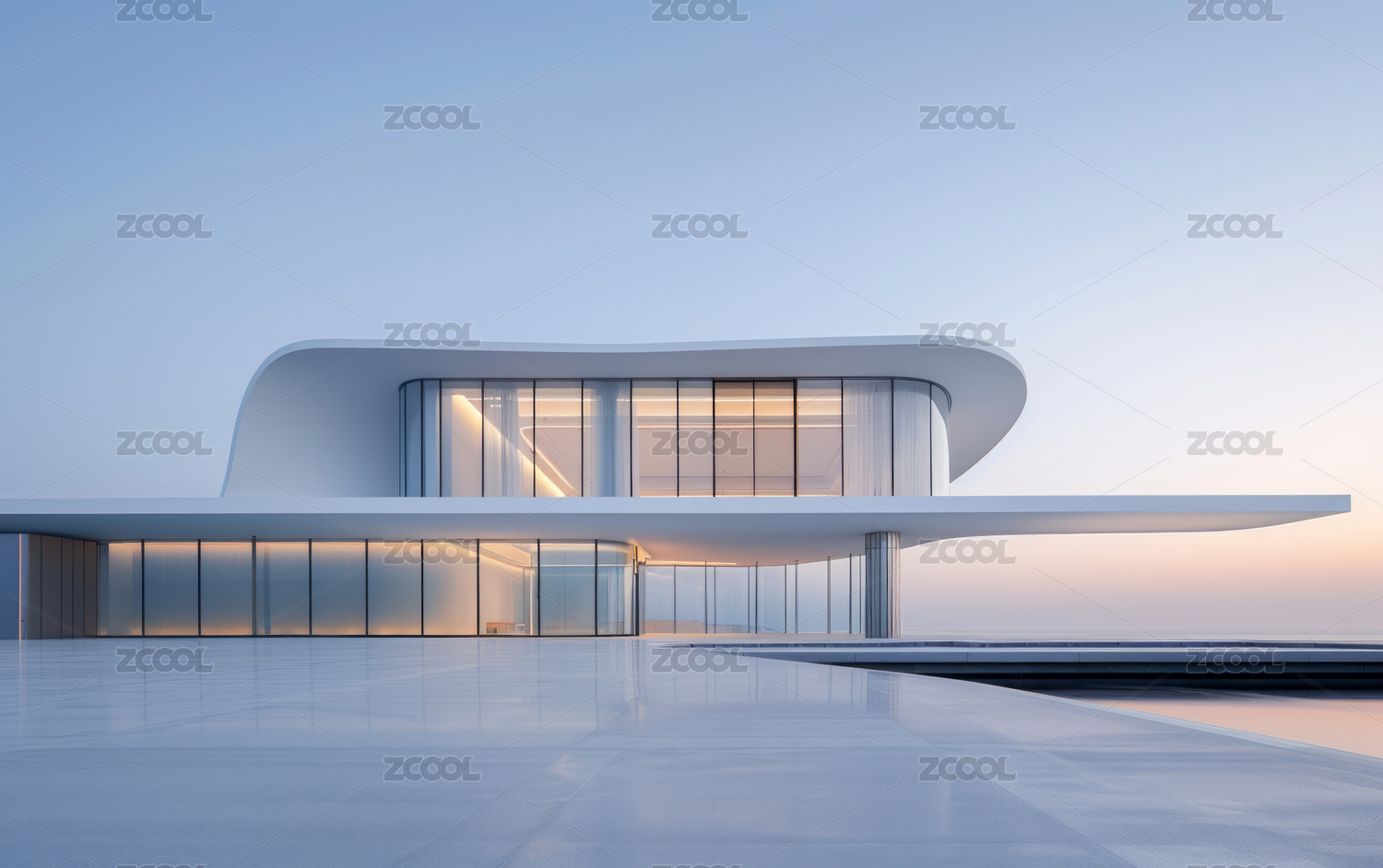 现代风流线型海景豪宅别墅汽车广告背景图