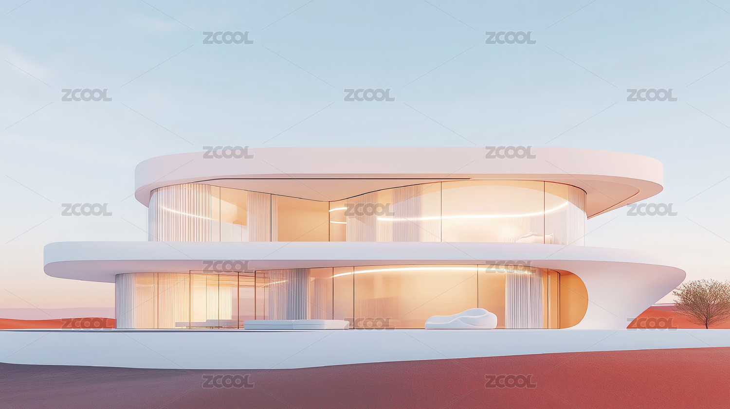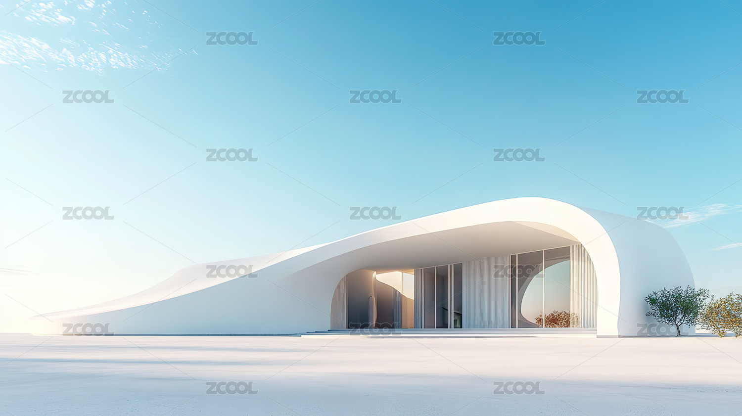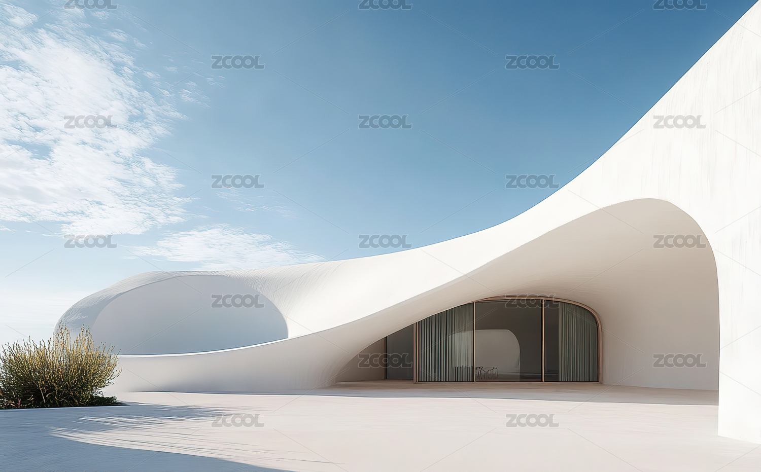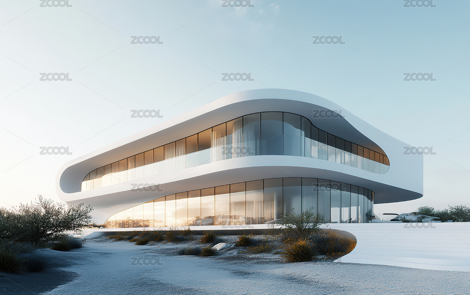 沙漠中的白色流线型艺术豪宅