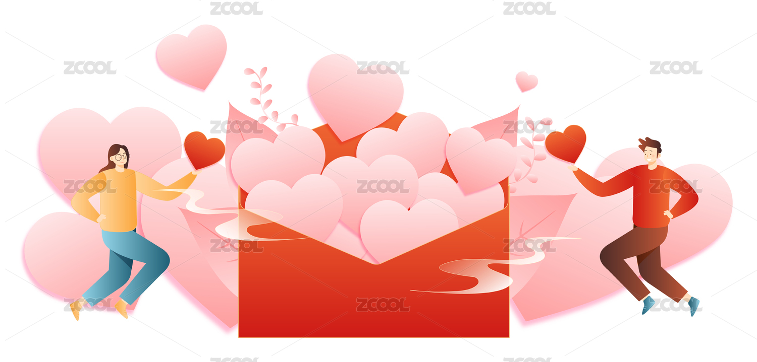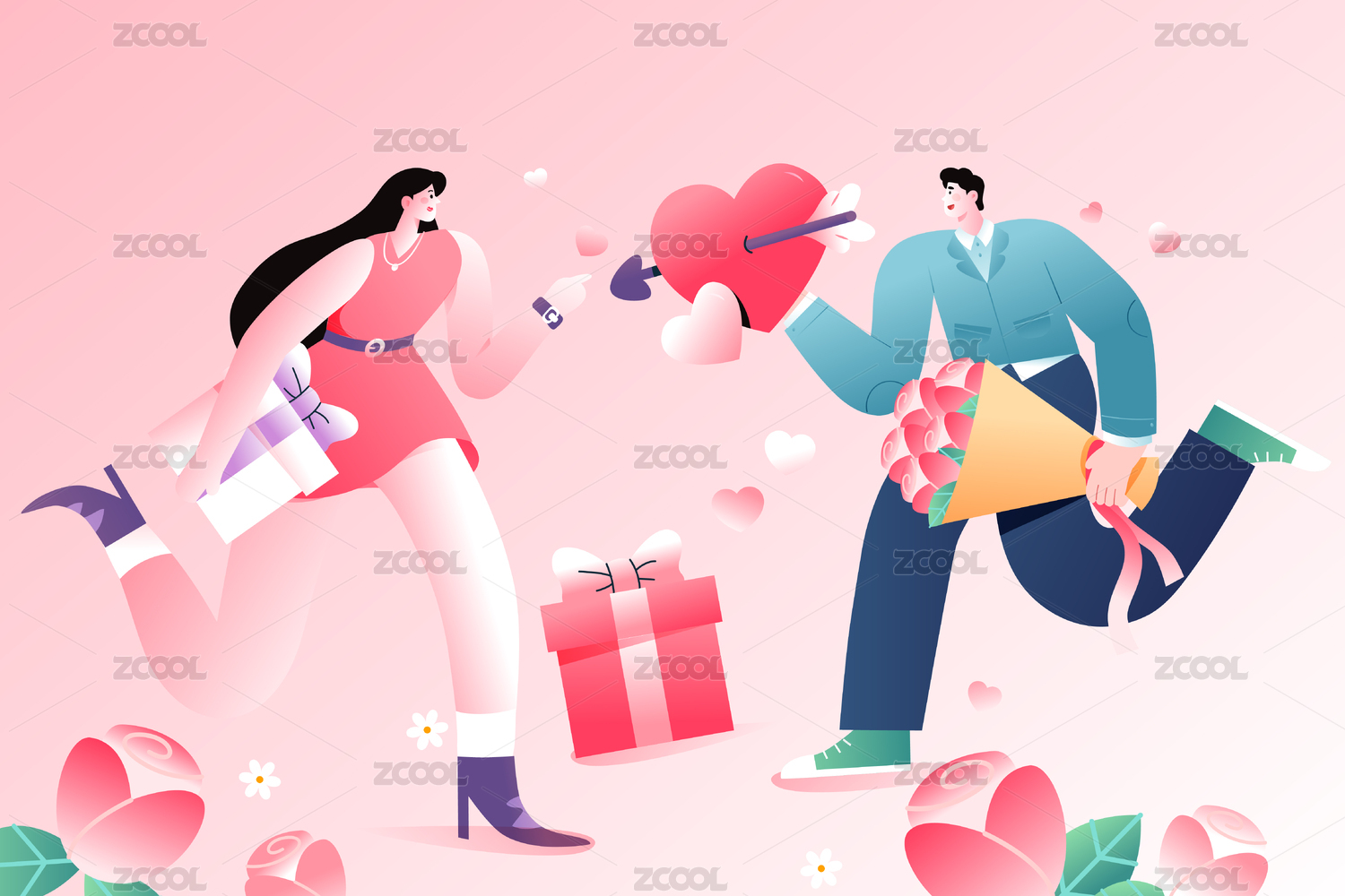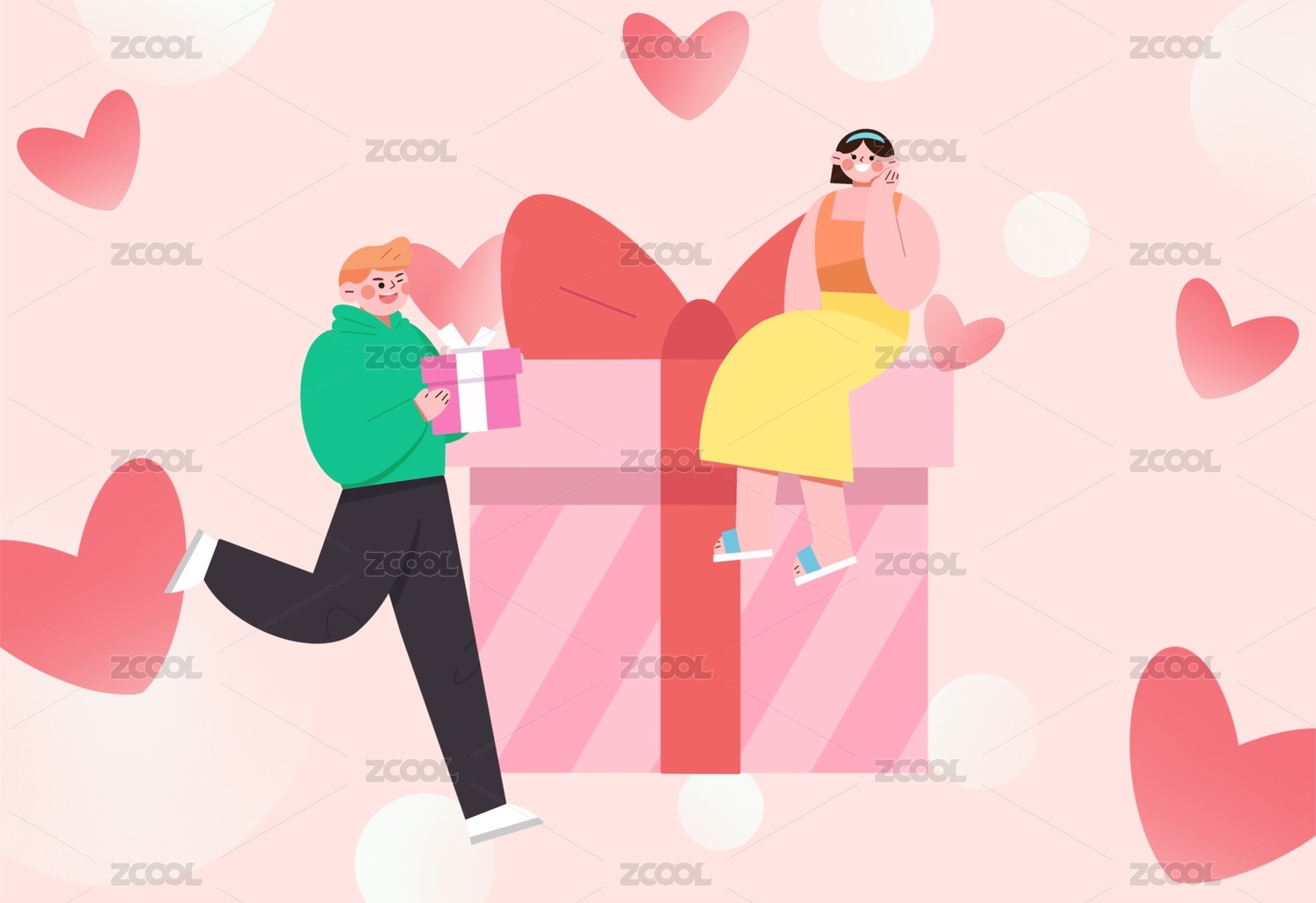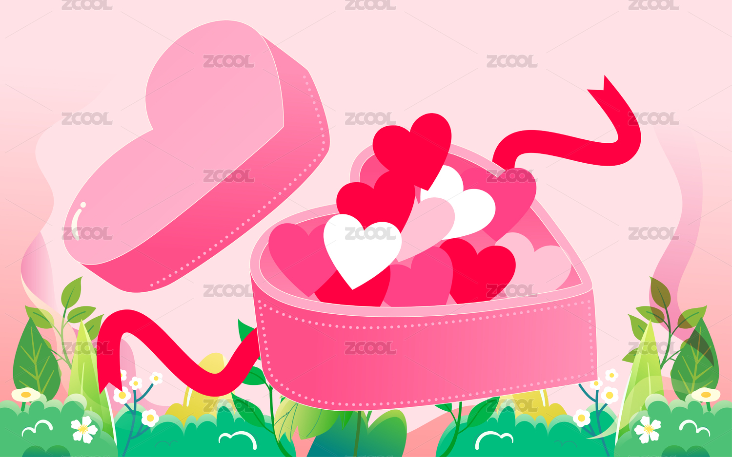 浪漫情人节礼物插画感恩节爱心礼盒活动海报