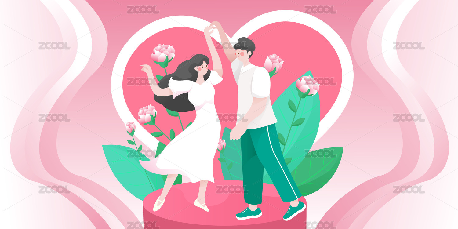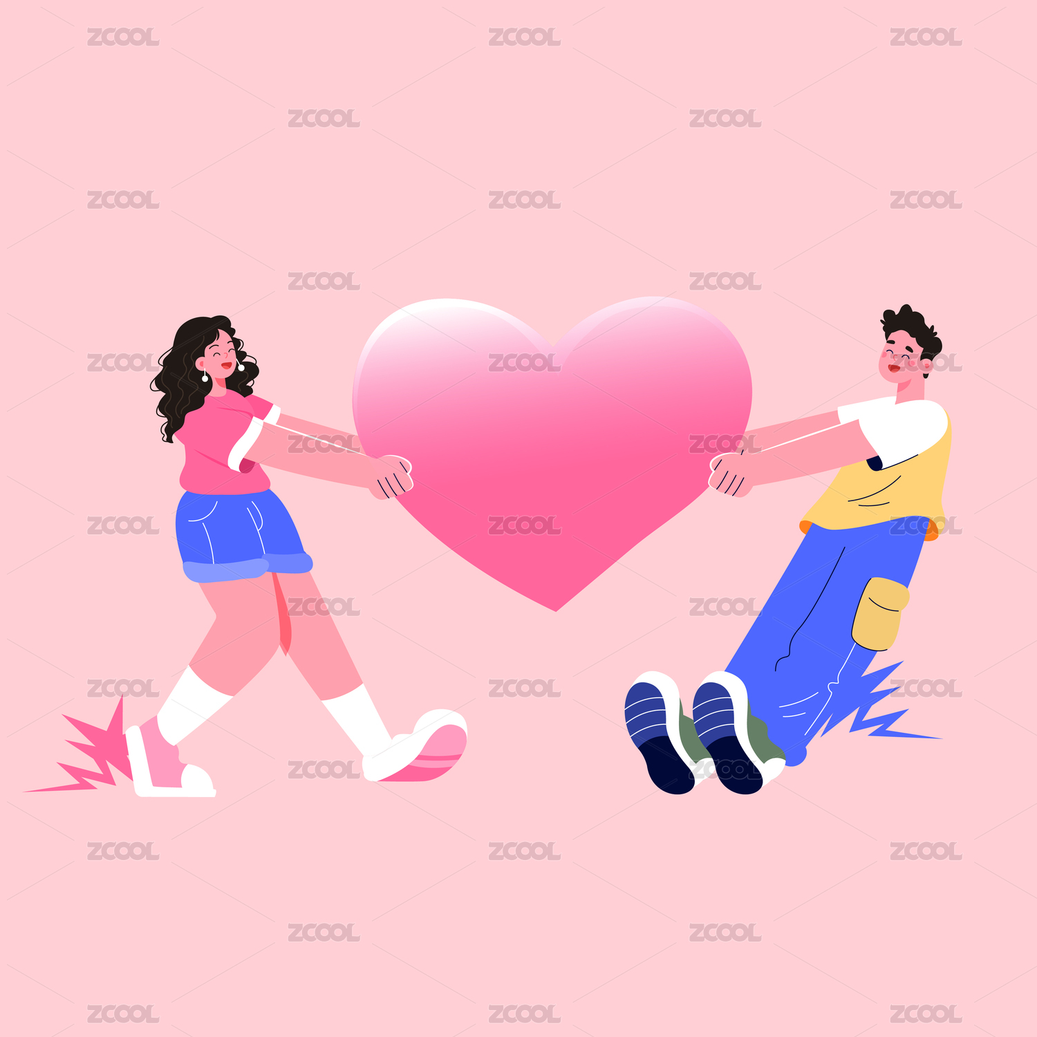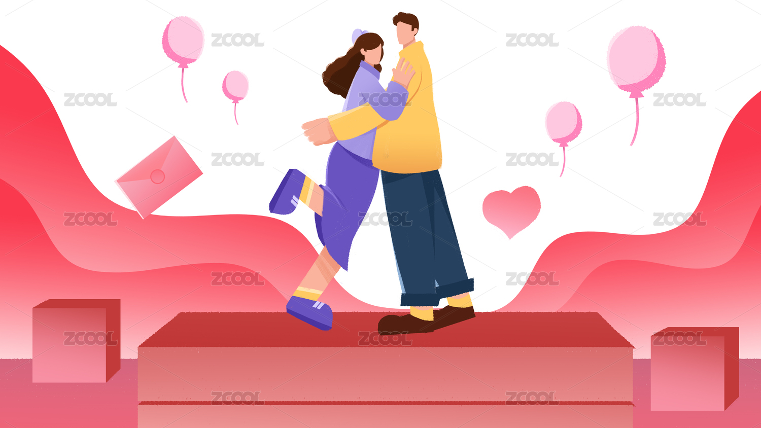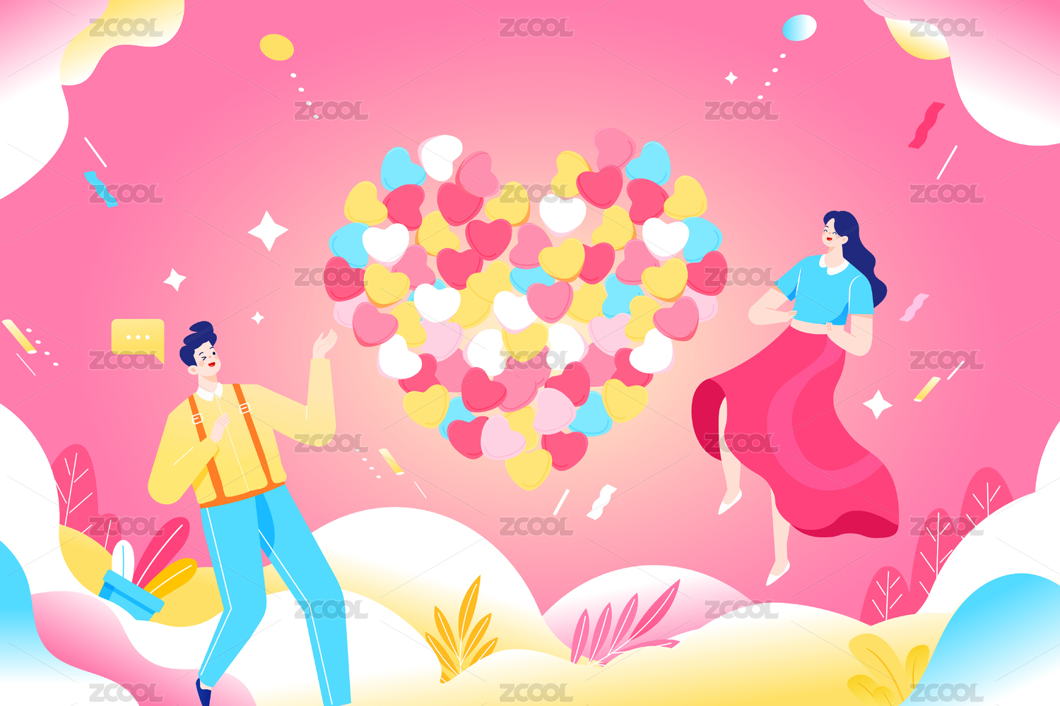 浪漫情人节礼物插画感恩节爱心礼盒活动海报