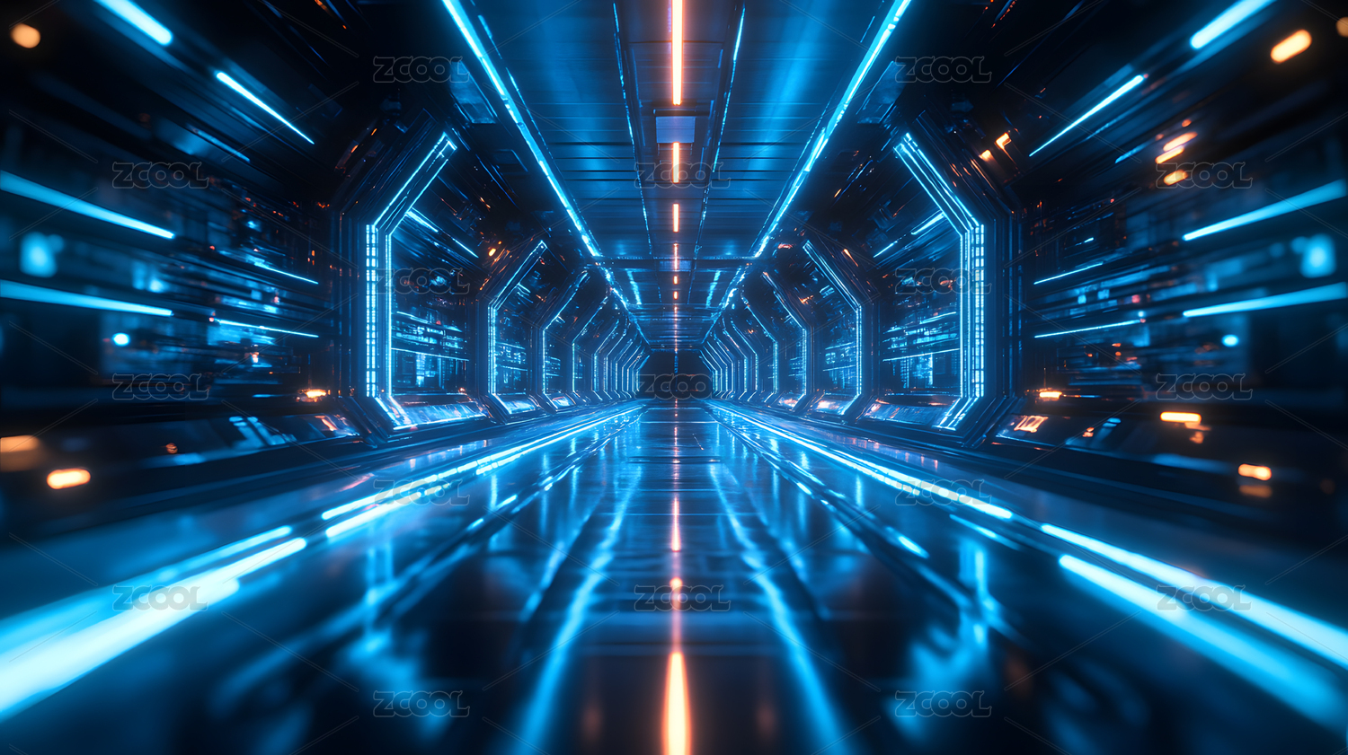 3D渲染的科幻延伸背景,蓝色未来科技感空