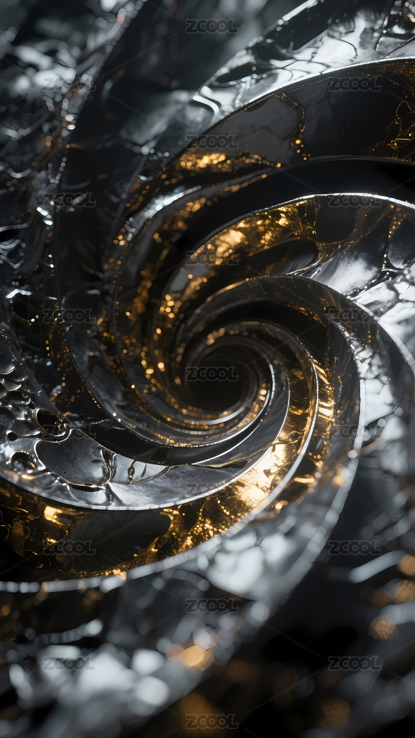 深色与金色交织的抽象螺旋